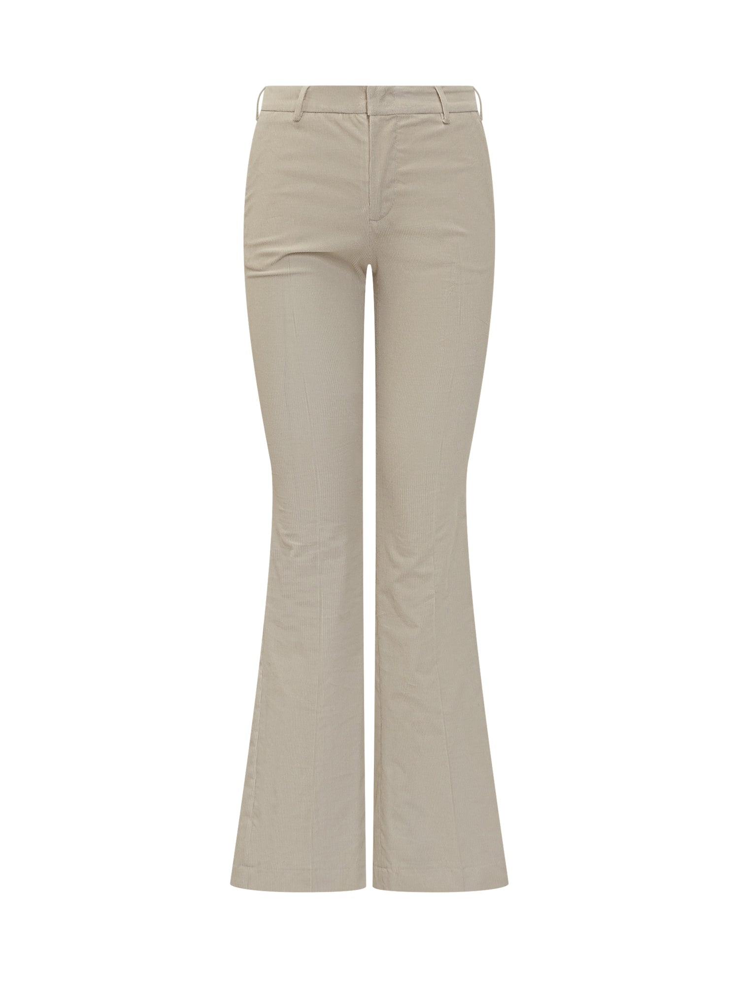 PT Torino beige mid-rise trousers with slim fit and flared hem. A feminine and versatile piece that elongates the silhouette.