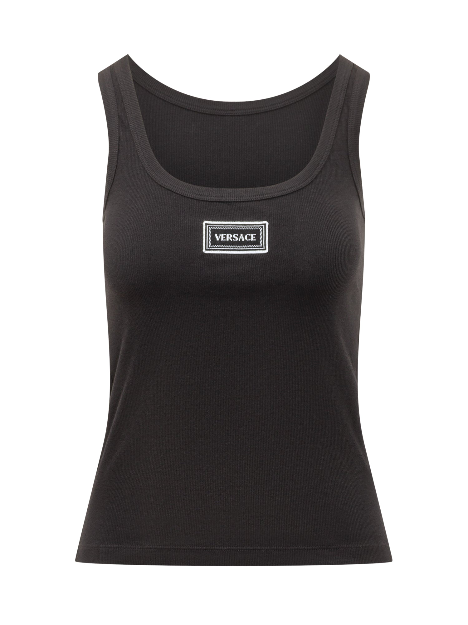 Jersey tank top made from soft, breathable fabric with GOTS certification. Features a round neckline, wide shoulder straps and a regular fit. The clean design is finished with a chest patch detail,.