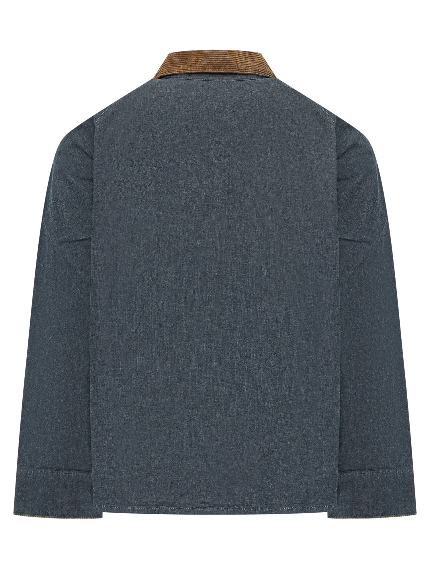 Denim jacket with contrast collar and front button closure. Slanted side pockets and regular fit. Design inspired by heritage styles.