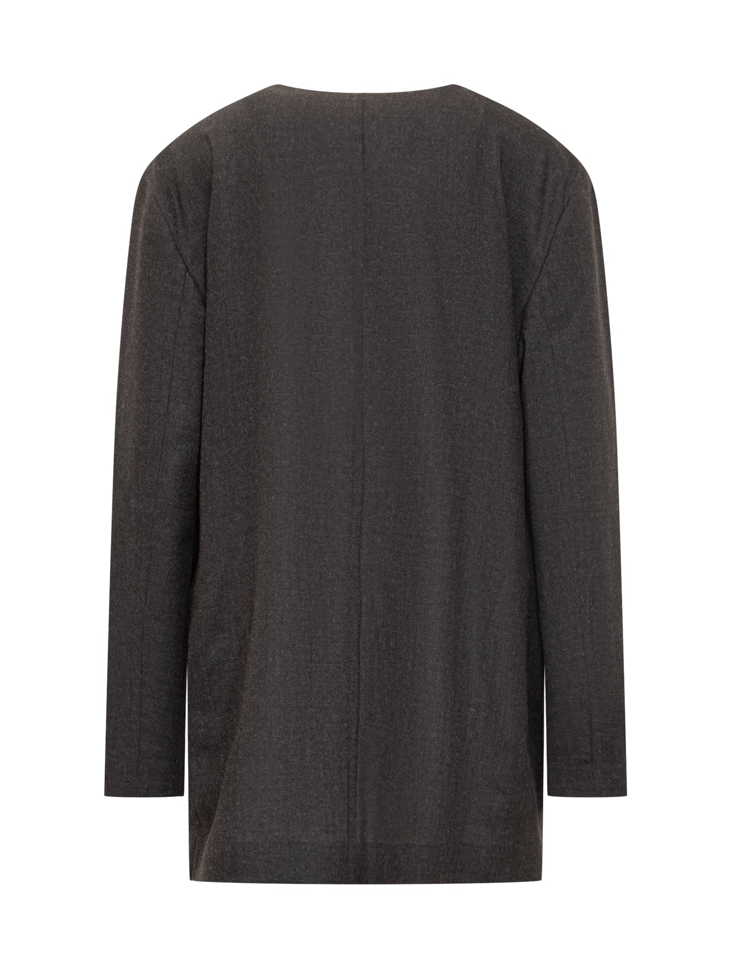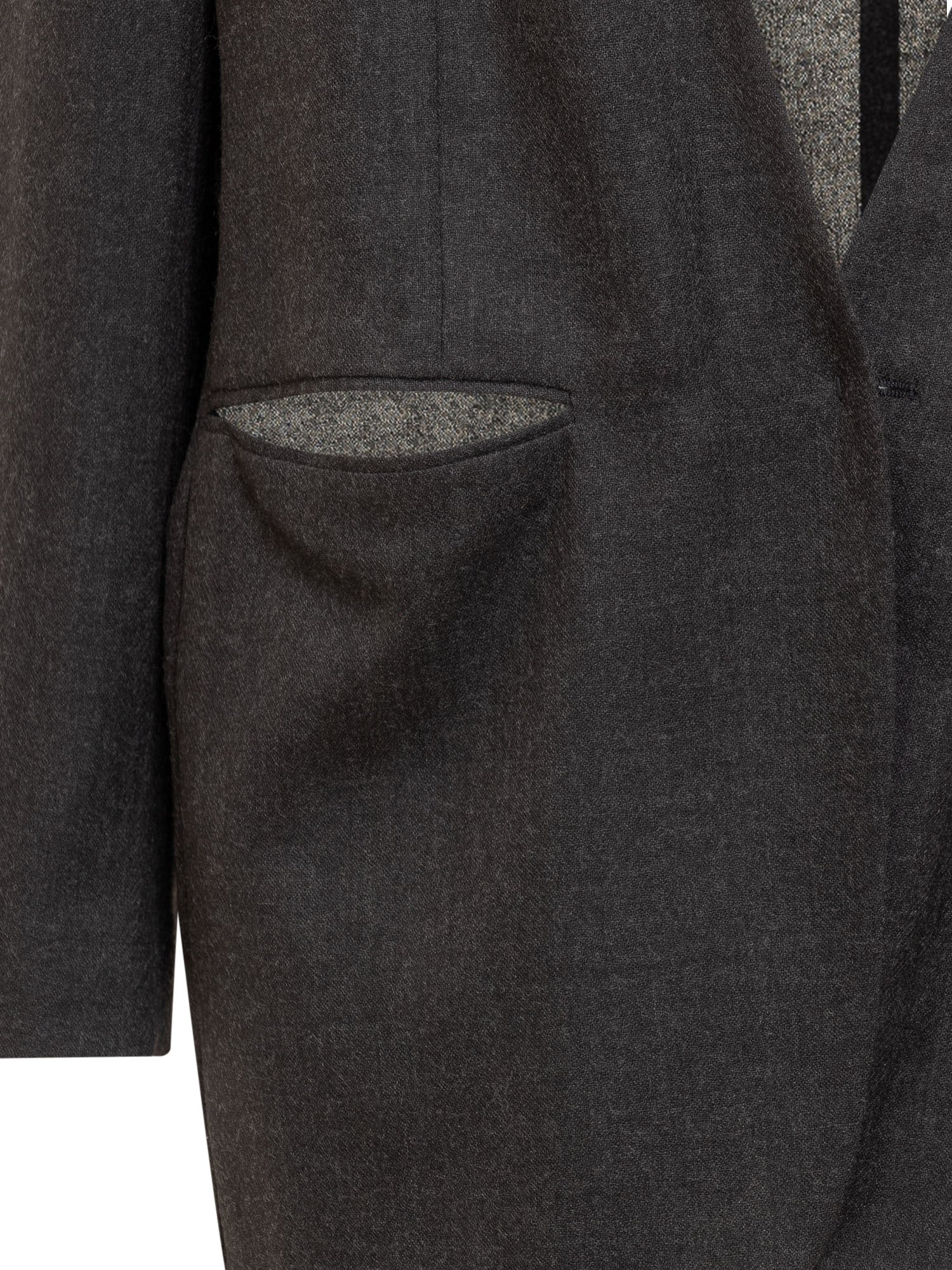 Alberta Ferretti wool blazer in anthracite grey with a deep V-neckline, contrasting inner details, and a decorative pocket.