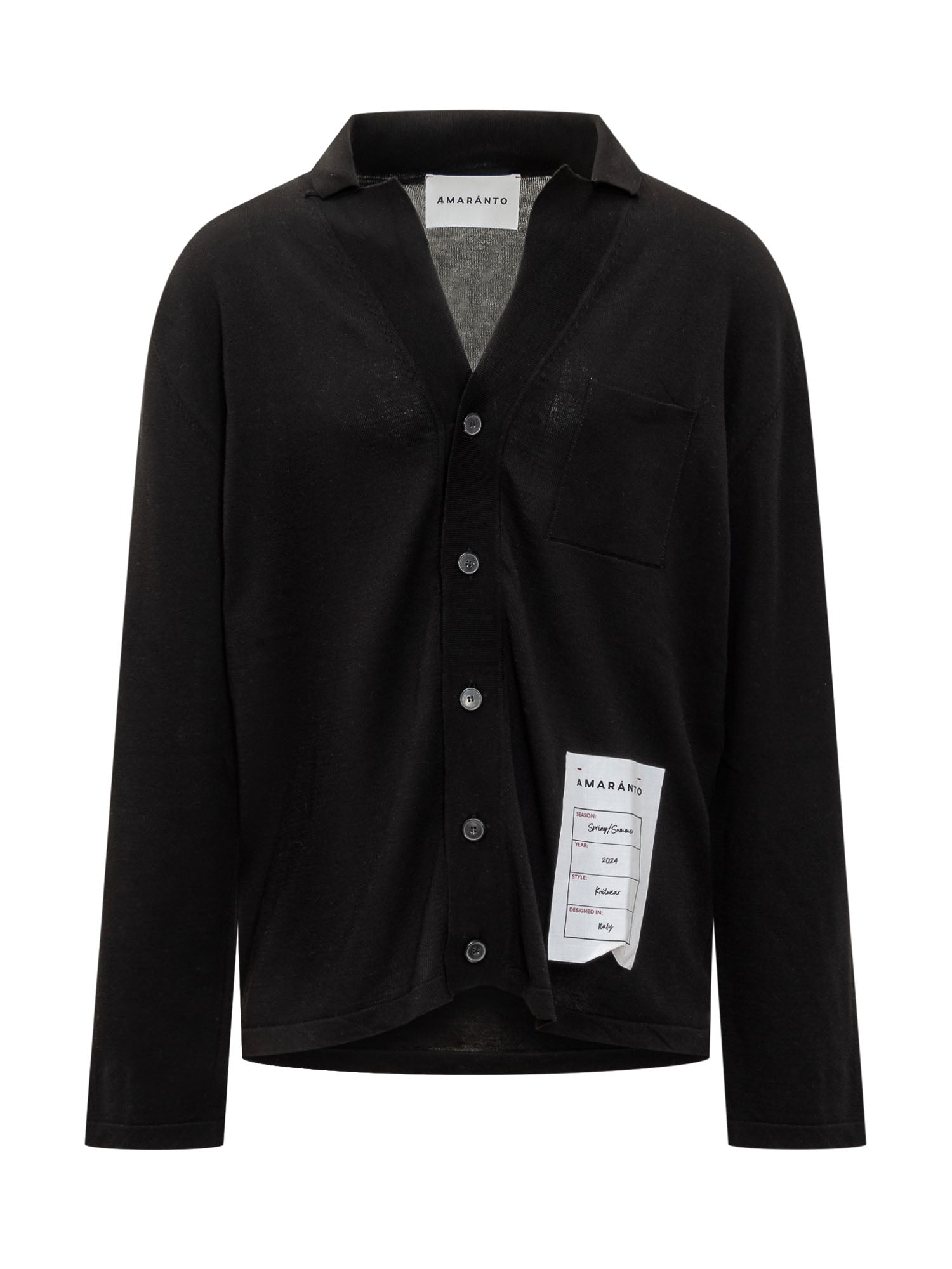 Cardigan with long sleeves. V-neck with lapels. Button closure. Pocket on the front. Logo on front.