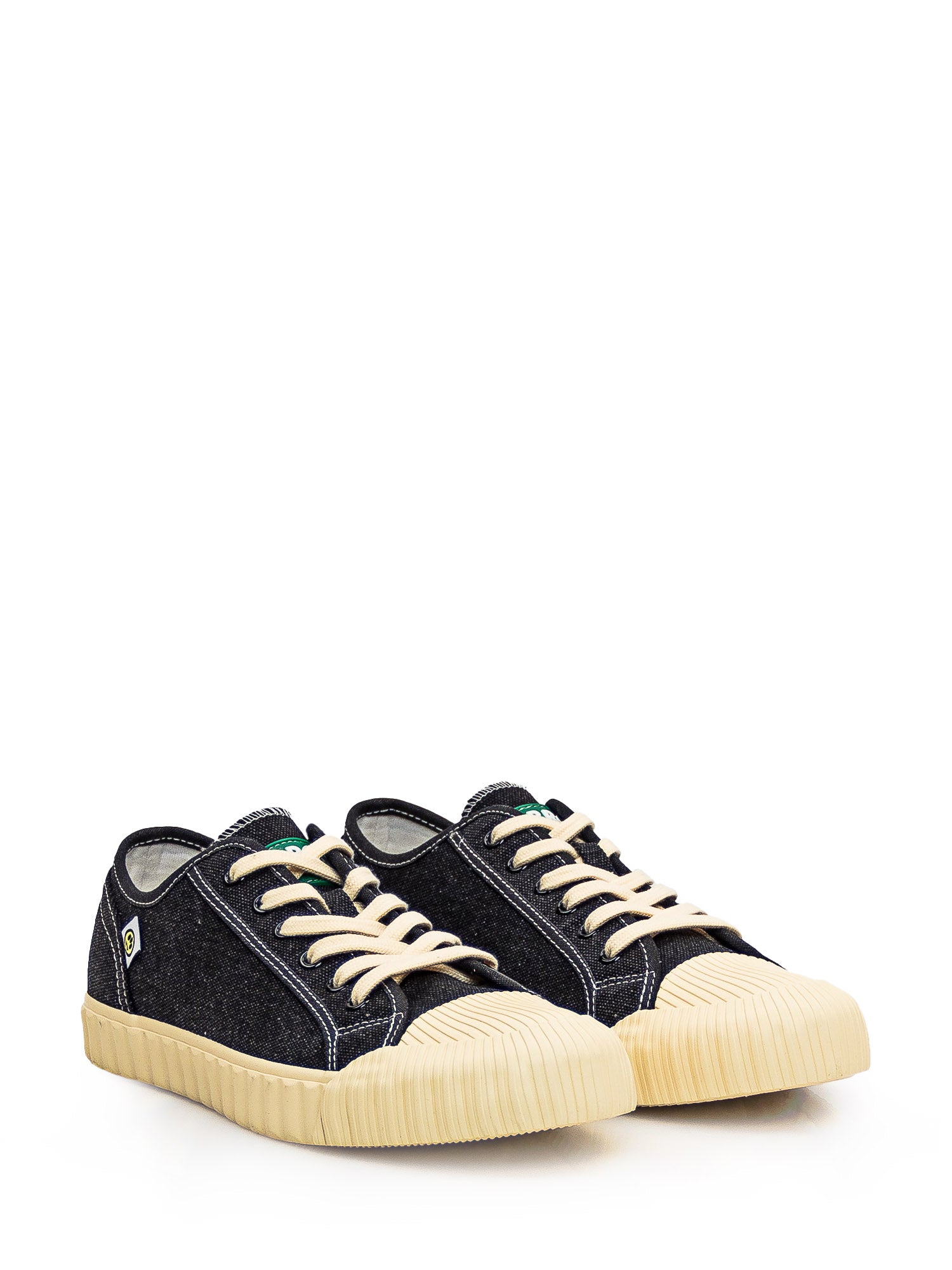 Black canvas sneaker. Lace-up closure. Rubber logo patch on tongue. Logo on the heel.