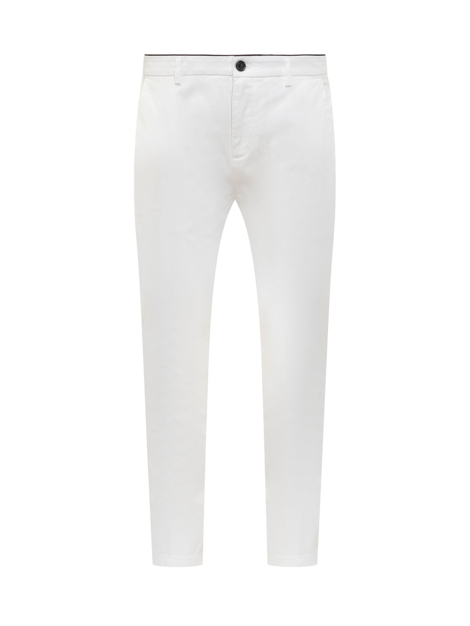 Long slim fit pants. Button closure. Belt loops. Four pockets.