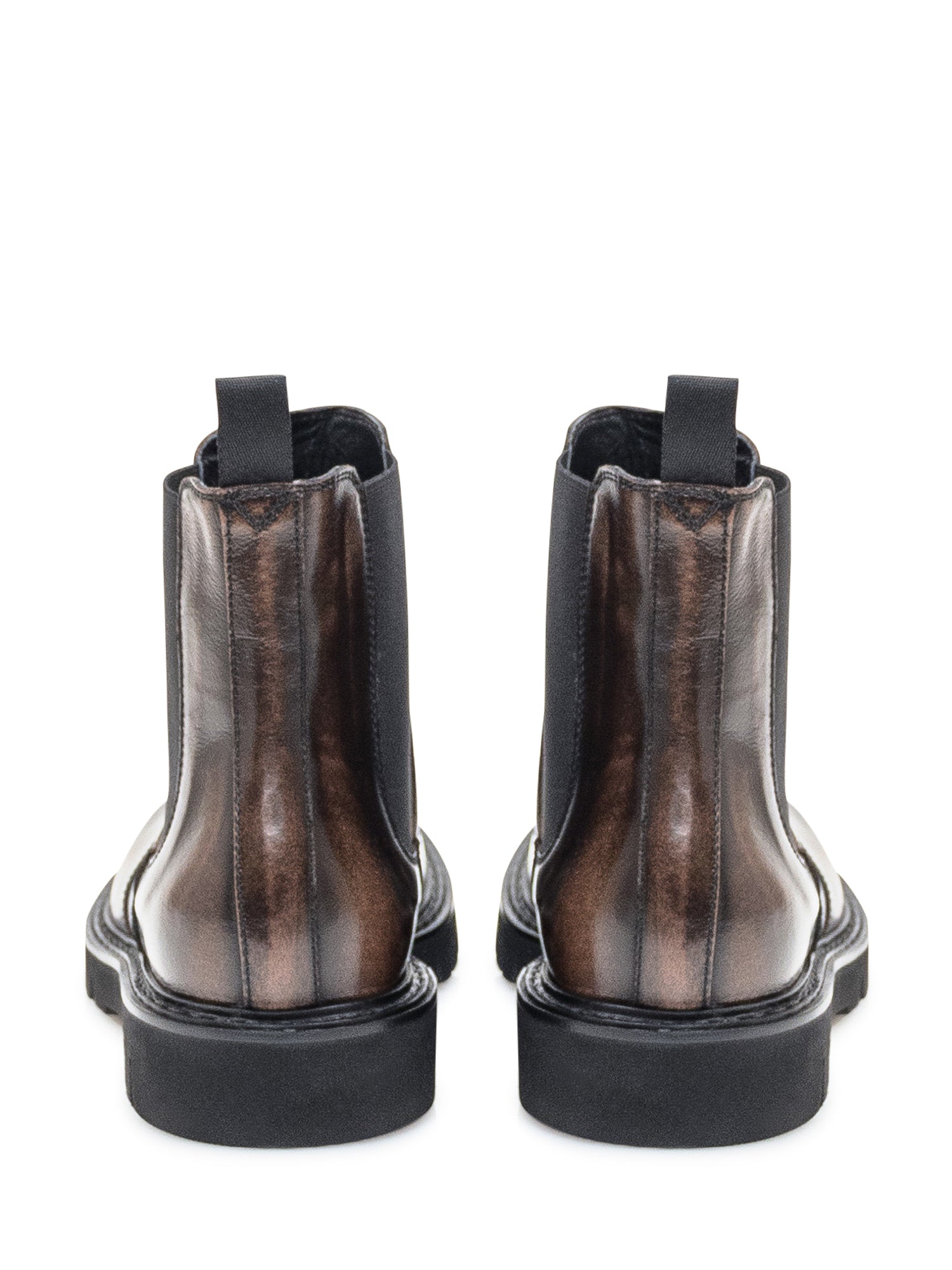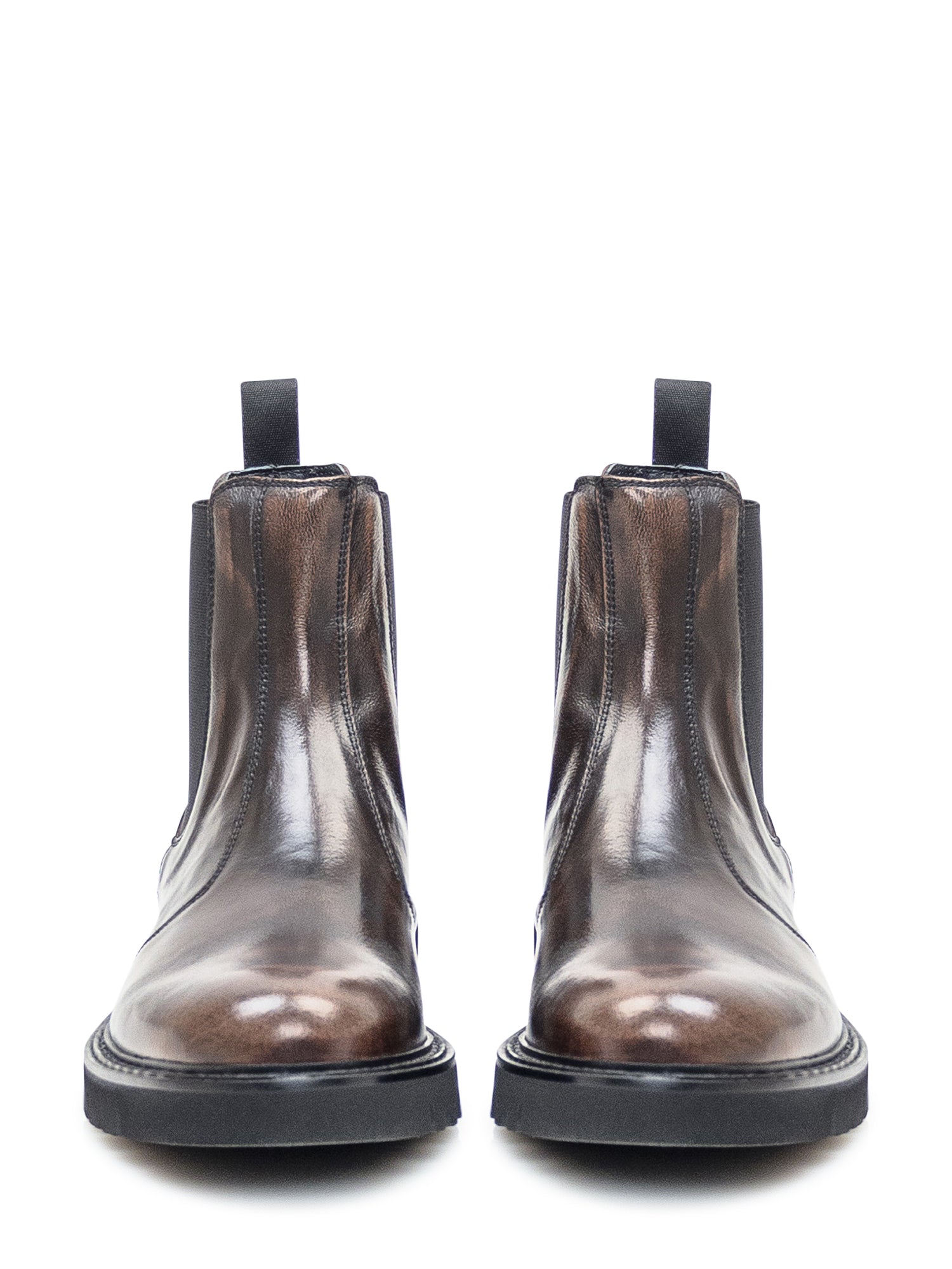 Duca Nero brown polished leather Chelsea boots with side elastic inserts and lug sole.