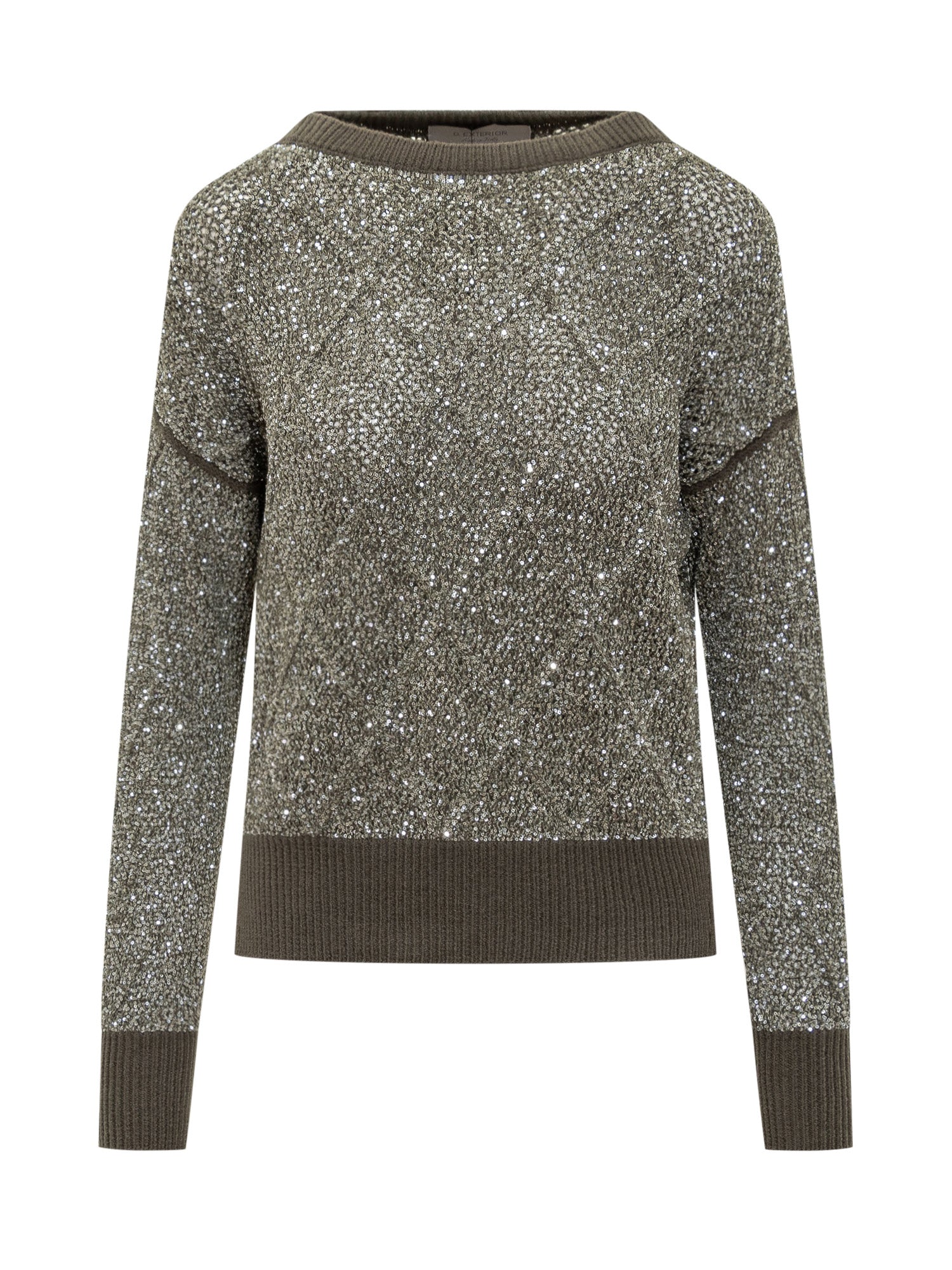 Exterior sweater crafted from shimmering lurex yarn with ribbed edges and a regular fit. Elegant and versatile.