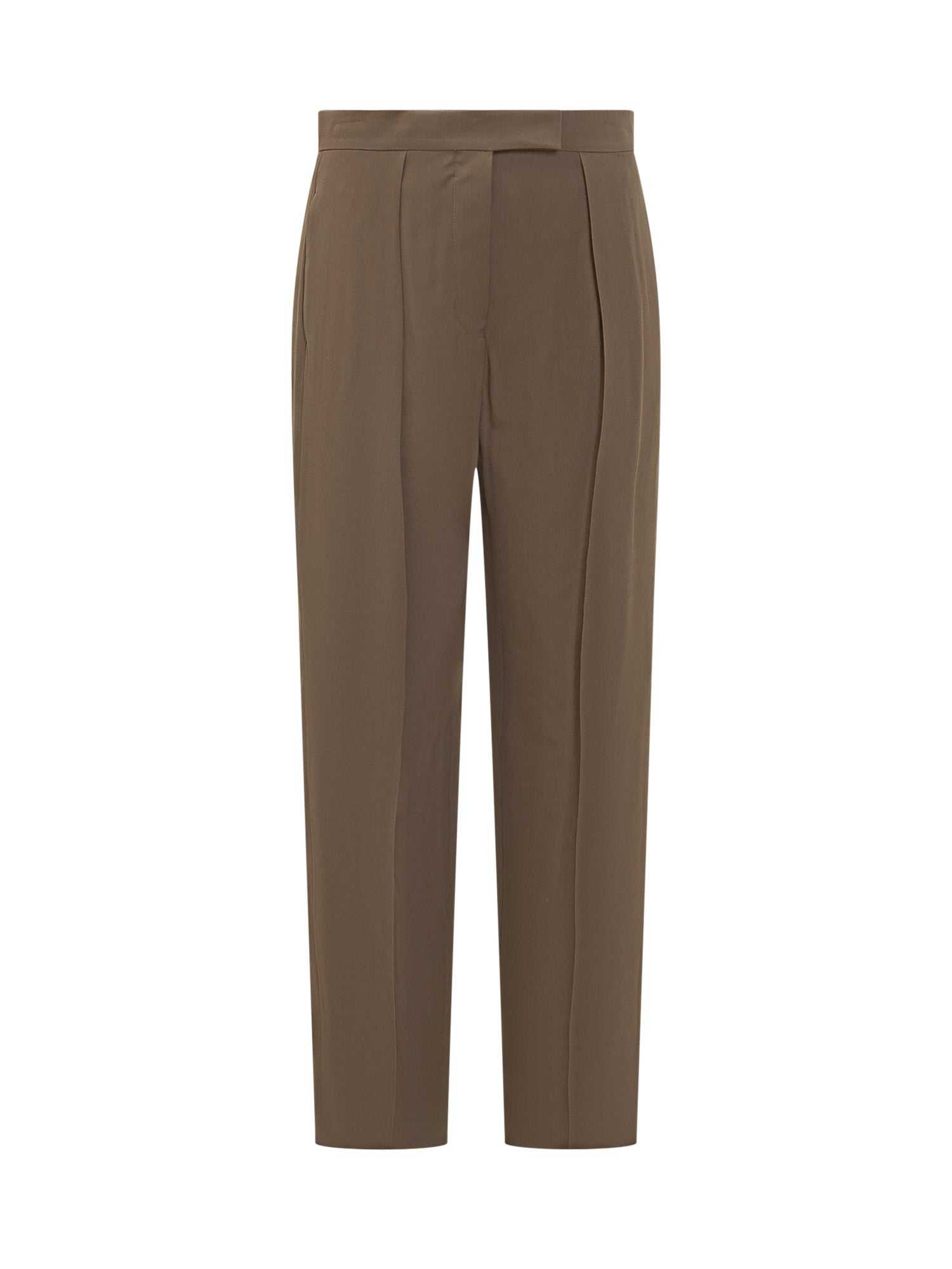 Brown trousers in viscose and wool. Belt loops. Pockets. Closure with zip and hook.