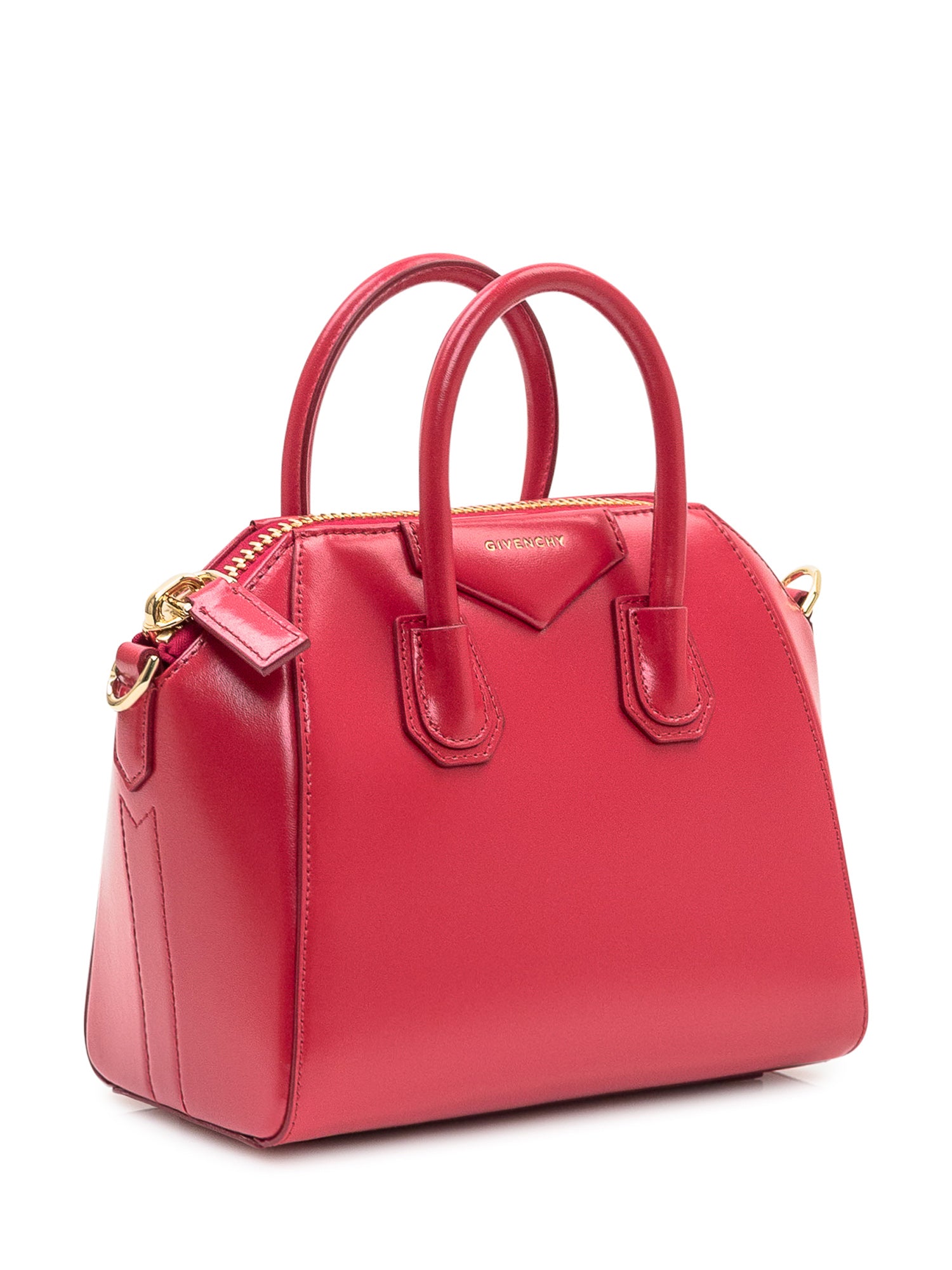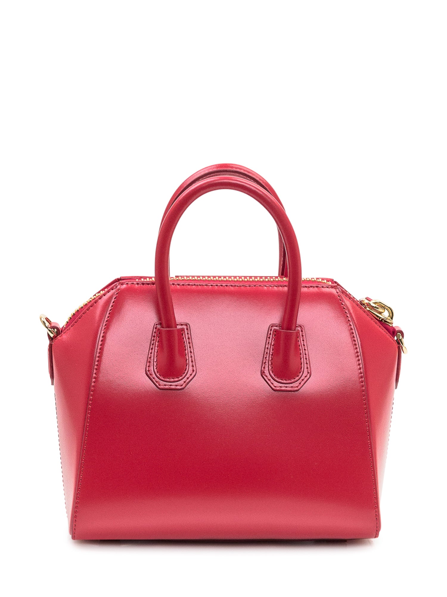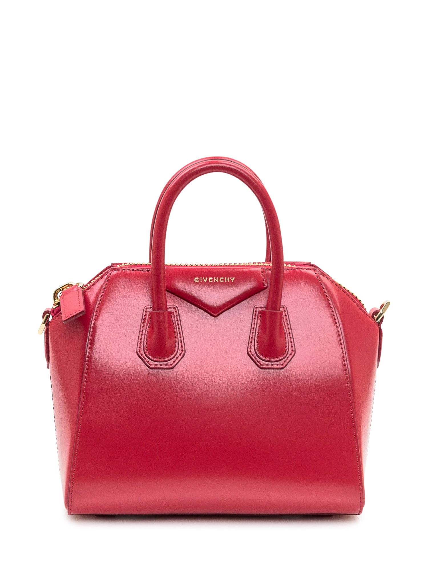 The Givenchy Antigona mini bag in smooth red leather is an icon of contemporary elegance. Featuring structured top handles, adjustable strap and zip closure.