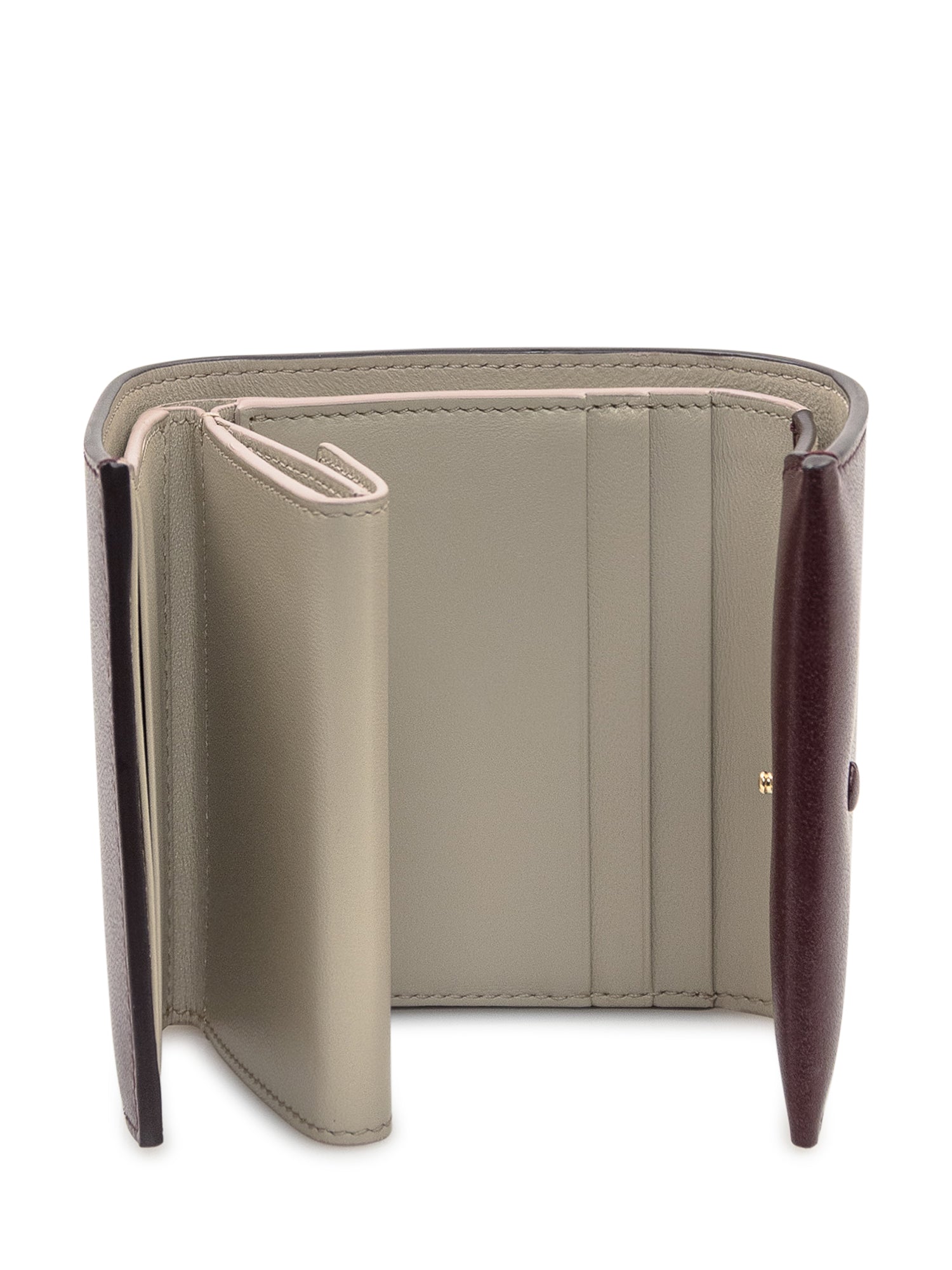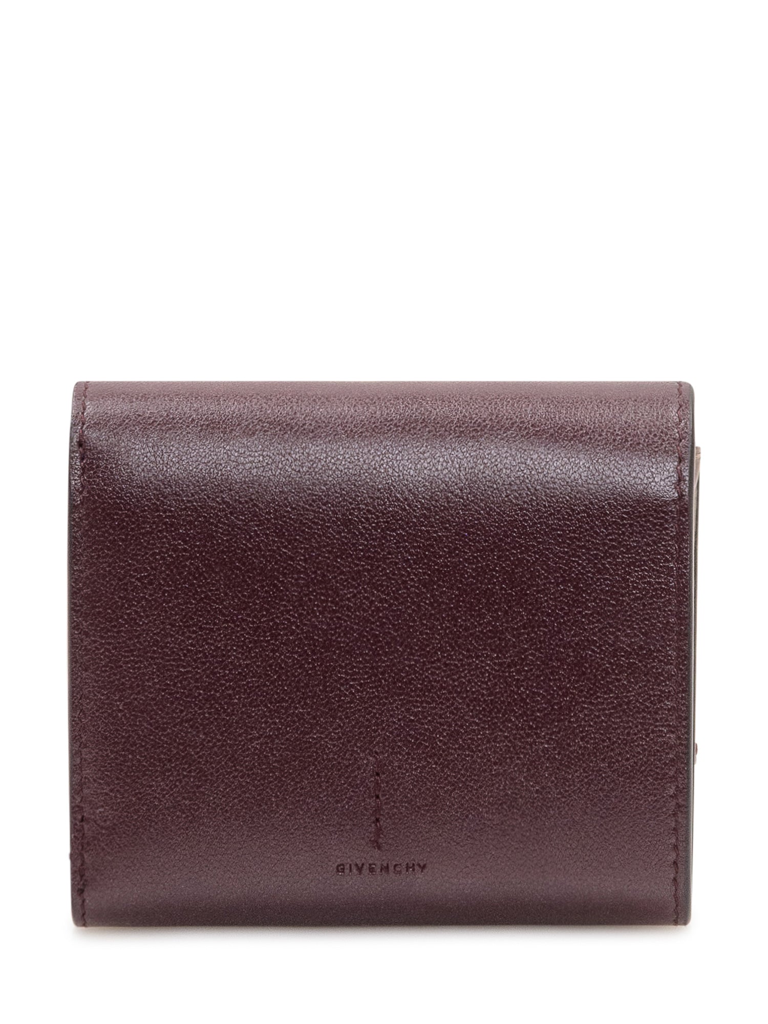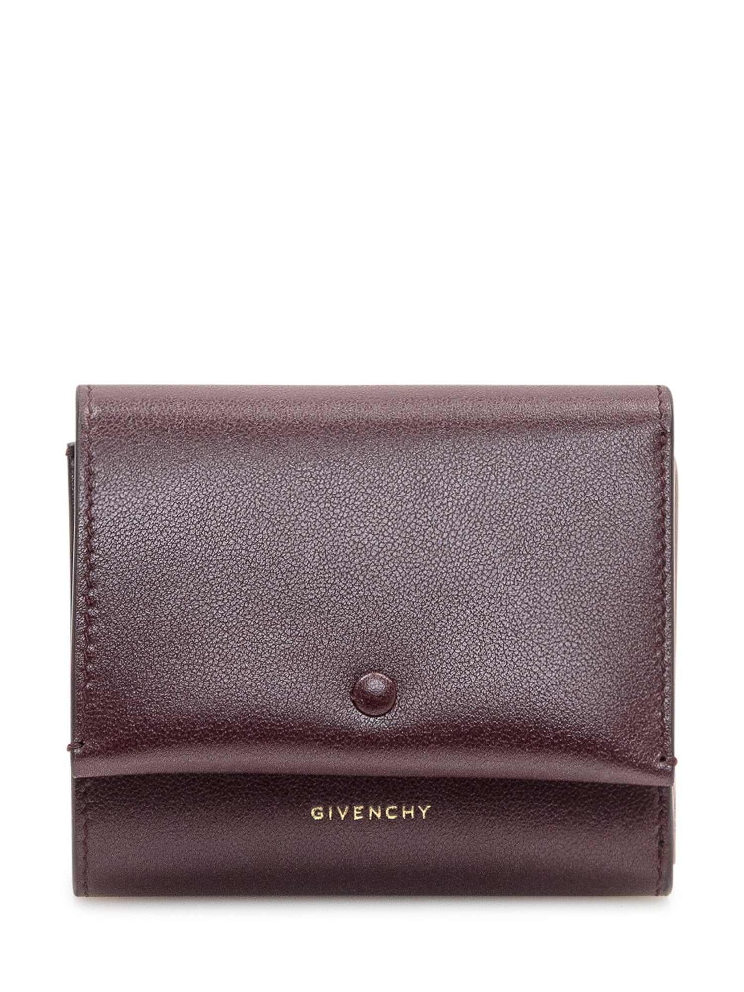 Elegant and compact, the Givenchy mini trifold wallet in burgundy leather