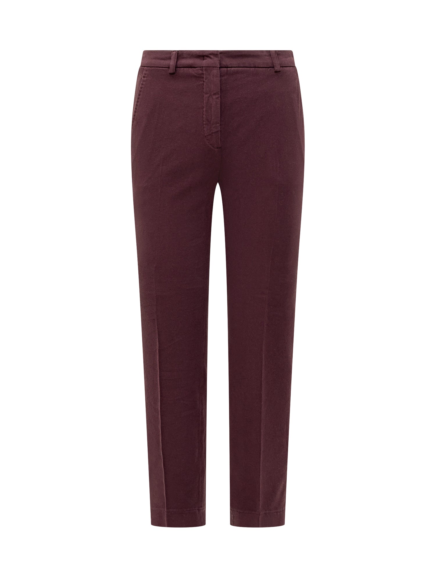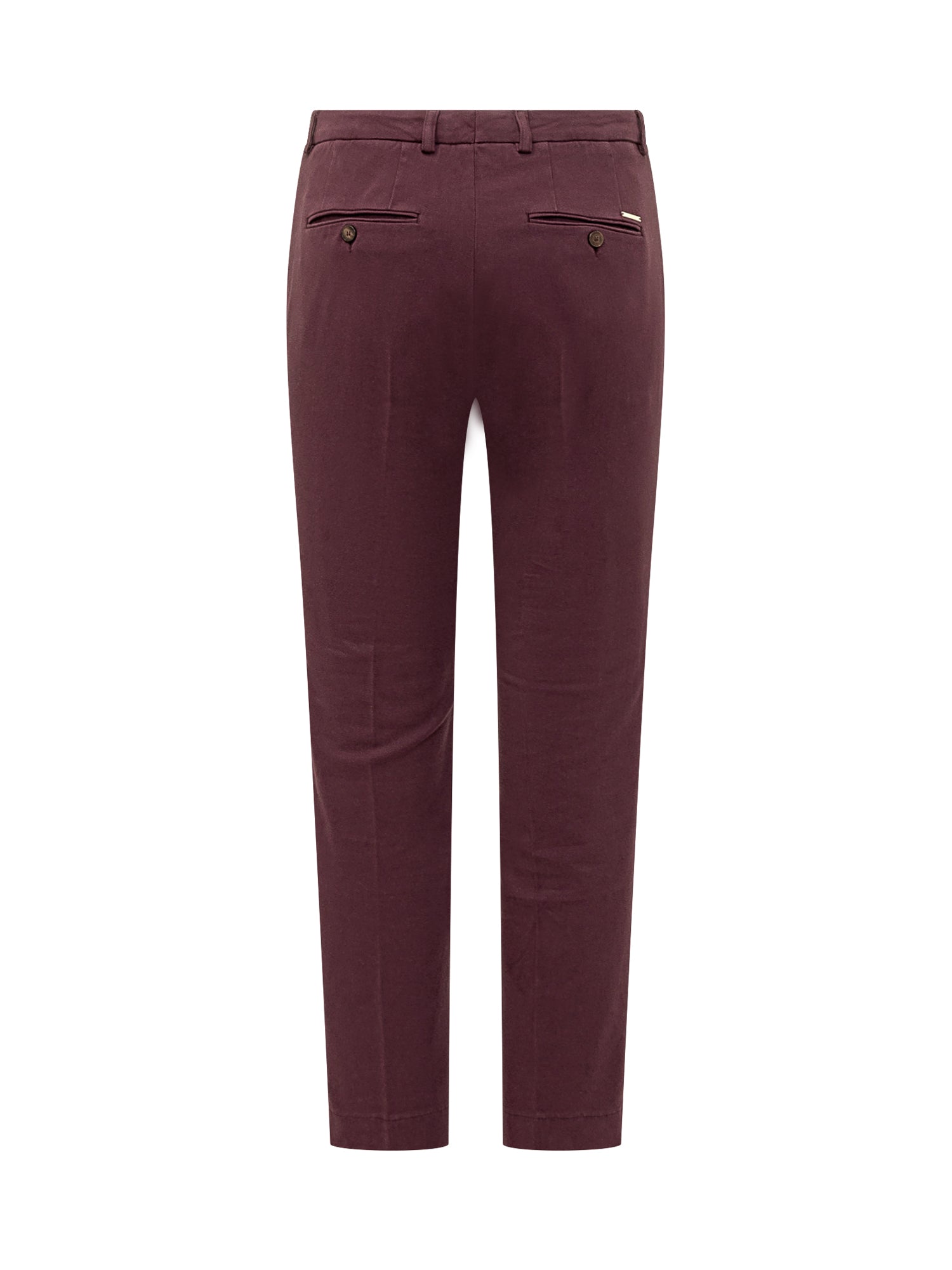 Incotex bordeaux slim fit trousers featuring side pockets and button and zip closure.