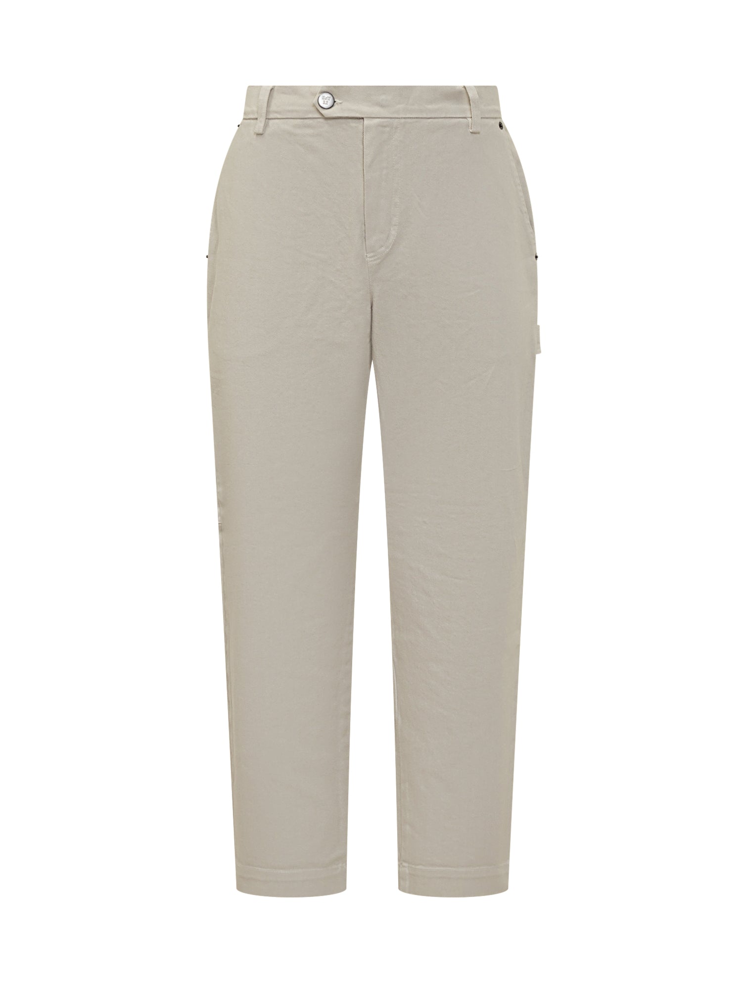 Maison Crazy Worker beige stretch cotton pants. Straight-leg design with side pockets.