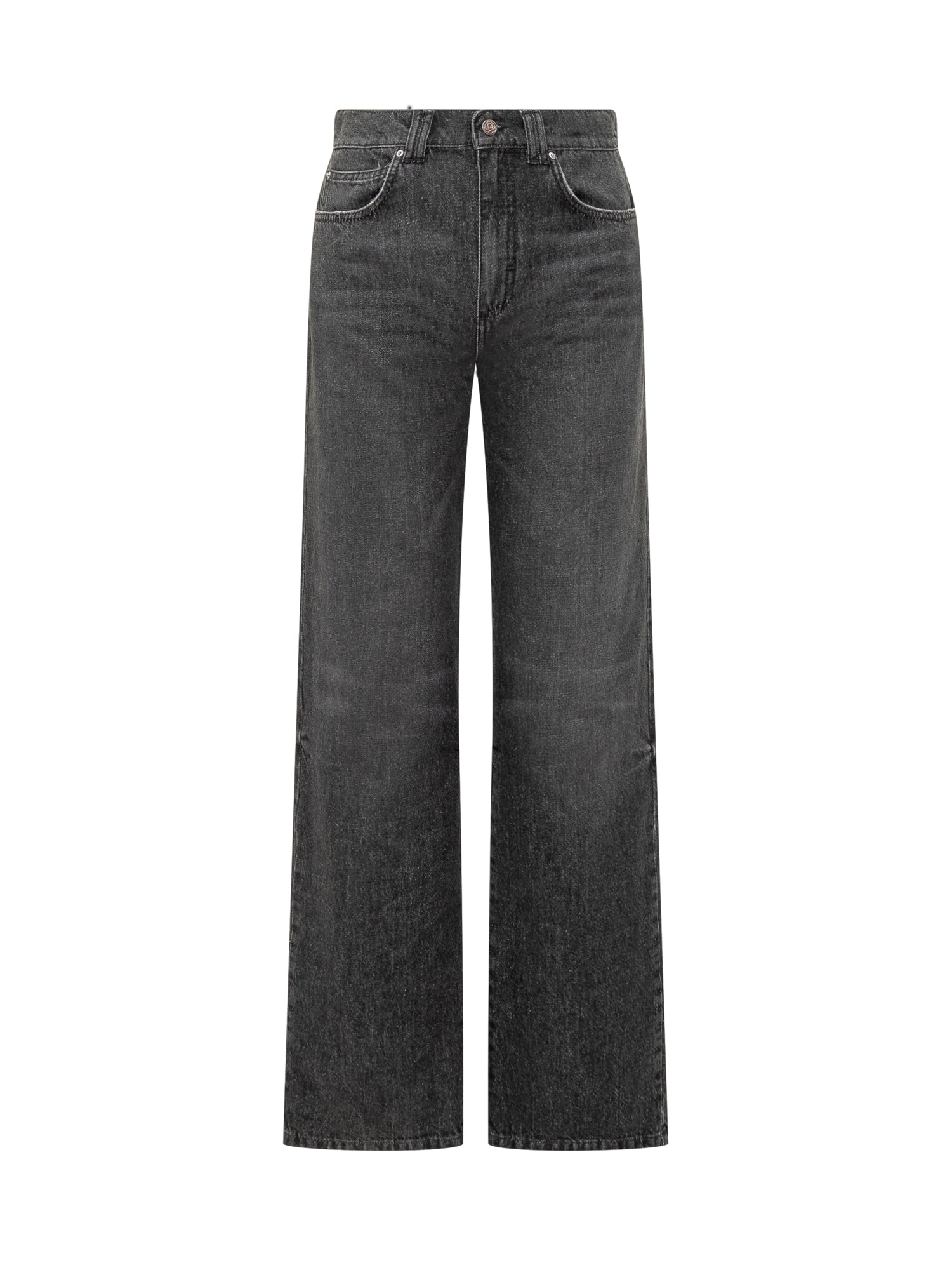 Black Marella Co-Design high-waisted jeans with wide leg and zip and button closure.