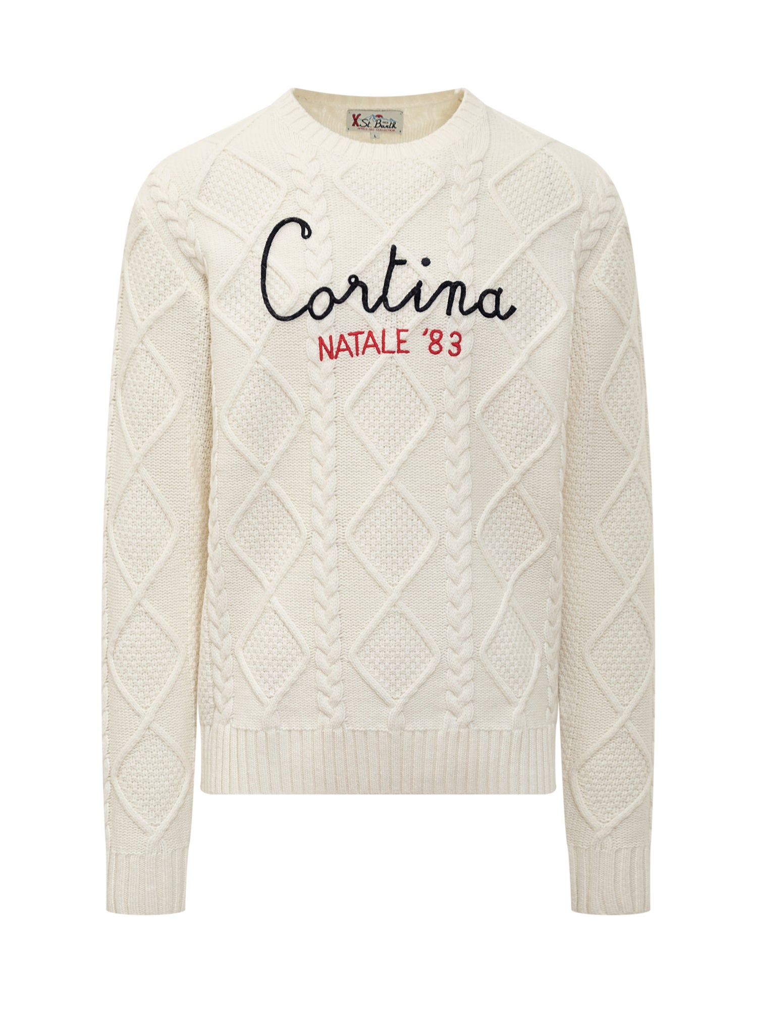 Long-sleeved T-shirt. Crew neck. Ribbed hems. Woven workmanship. Embroidered lettering on front.