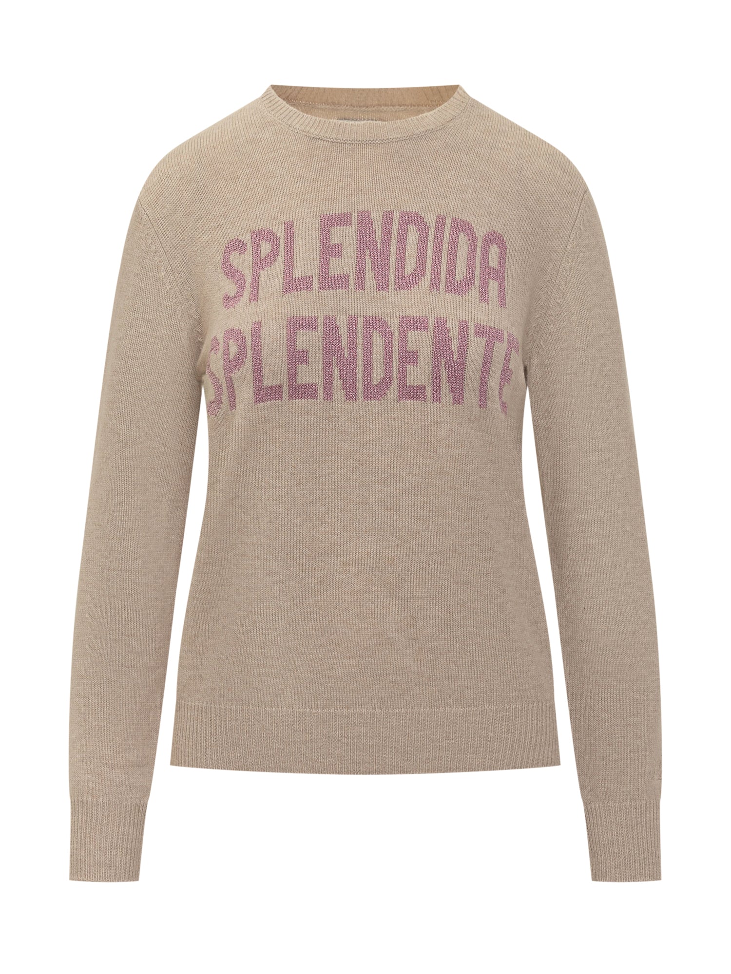 Beige crewneck sweater St. Barth featuring glitter pink Splendida Splendente lettering.