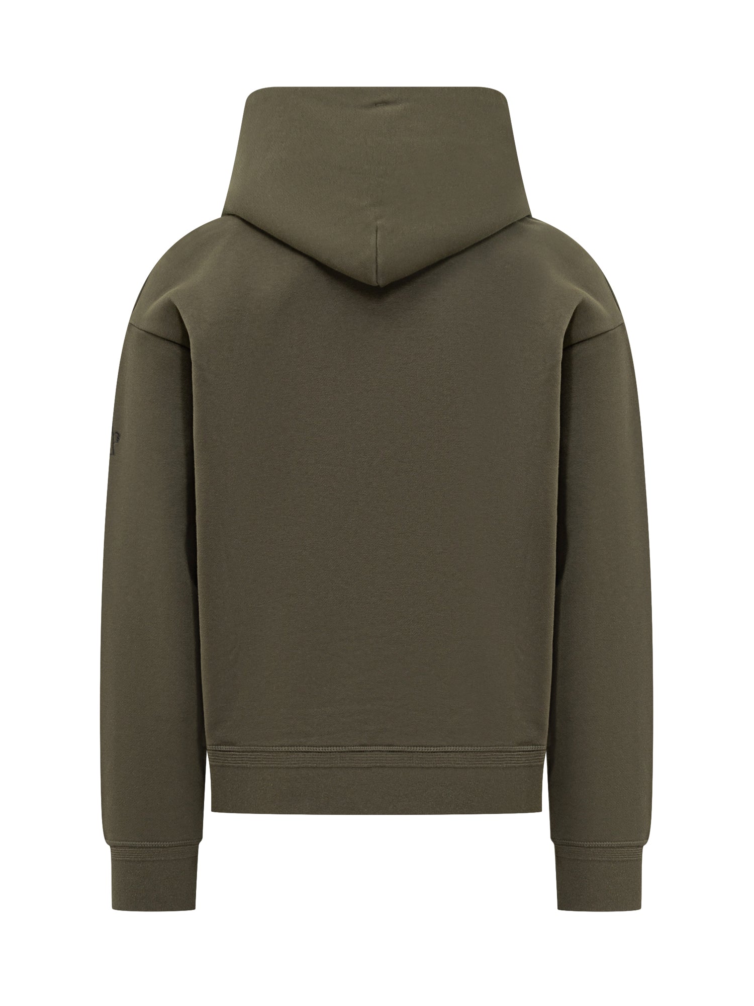 Moncler Grenoble green hoodie with adjustable hood, mountain patch on chest and braided drawstring.