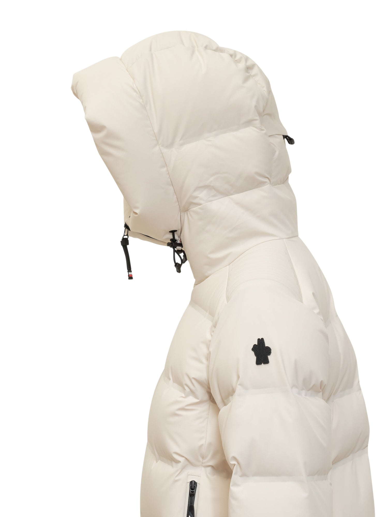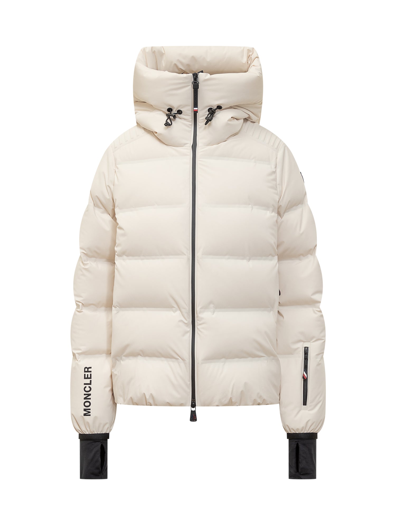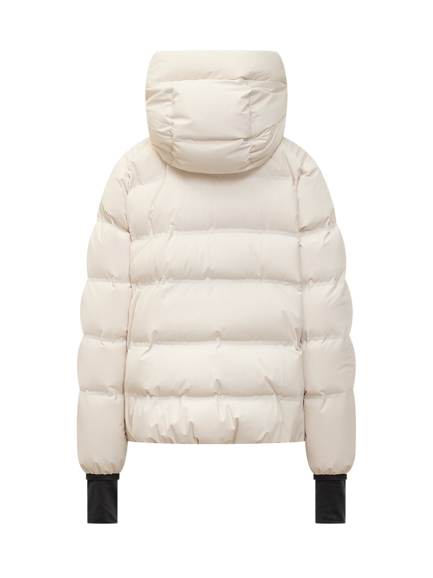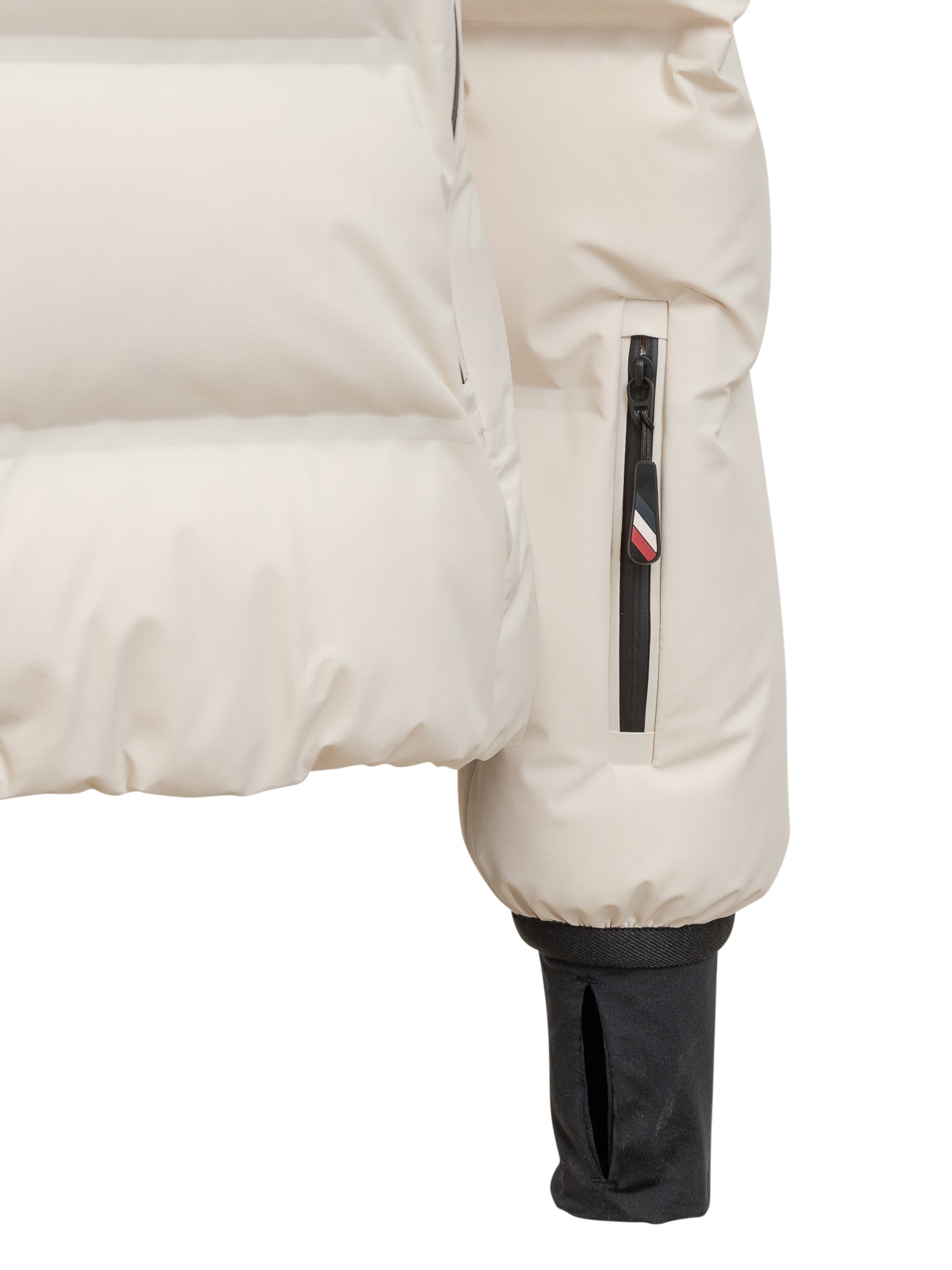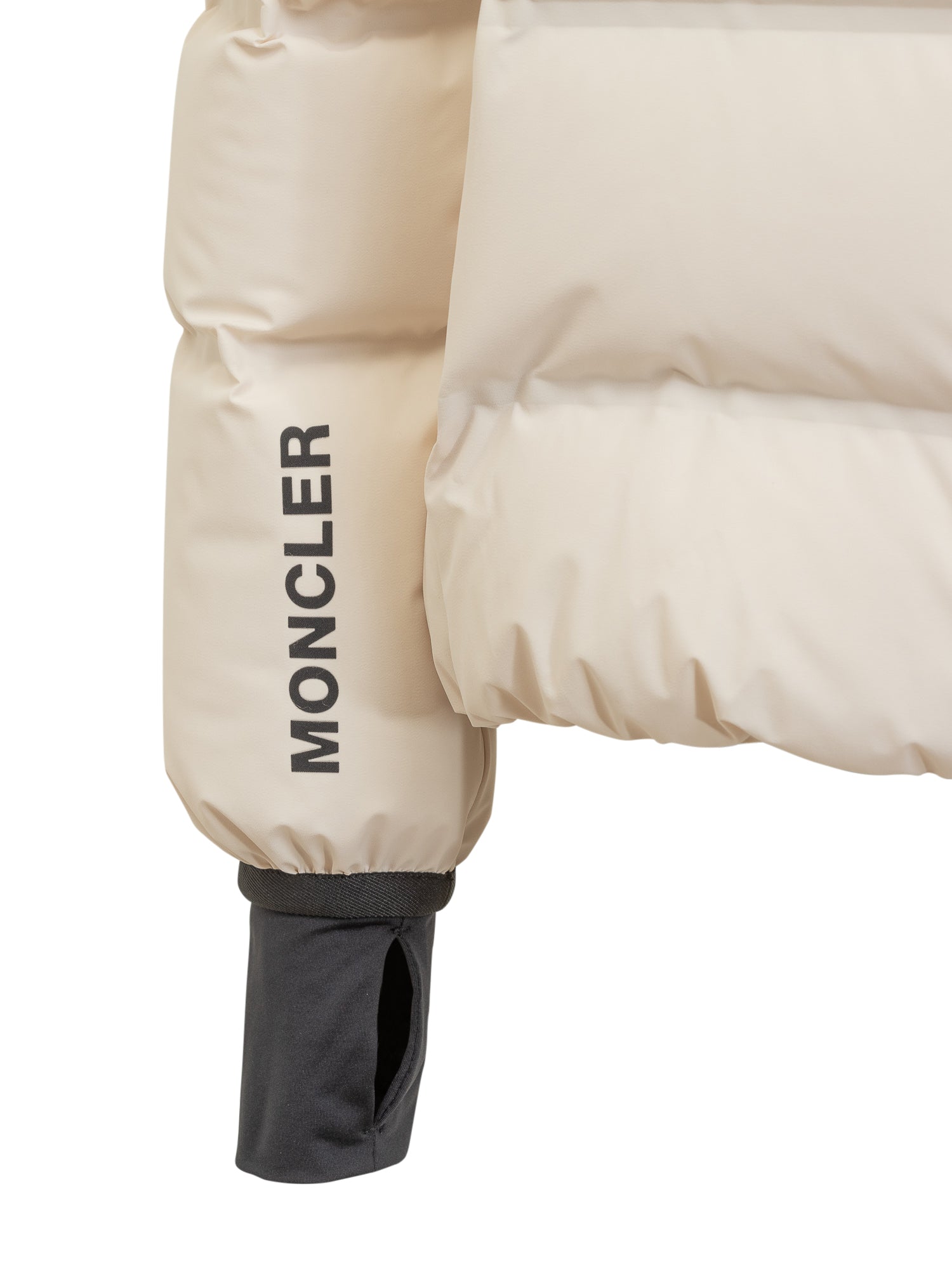 Long-sleeved down jacket. Drawstring hood. Zip closure. Two zipped pockets on the front. Zip pocket on the sleeve. Cuffs with holes. Logo printed on the sleeve. Patch logo on the sleeve.