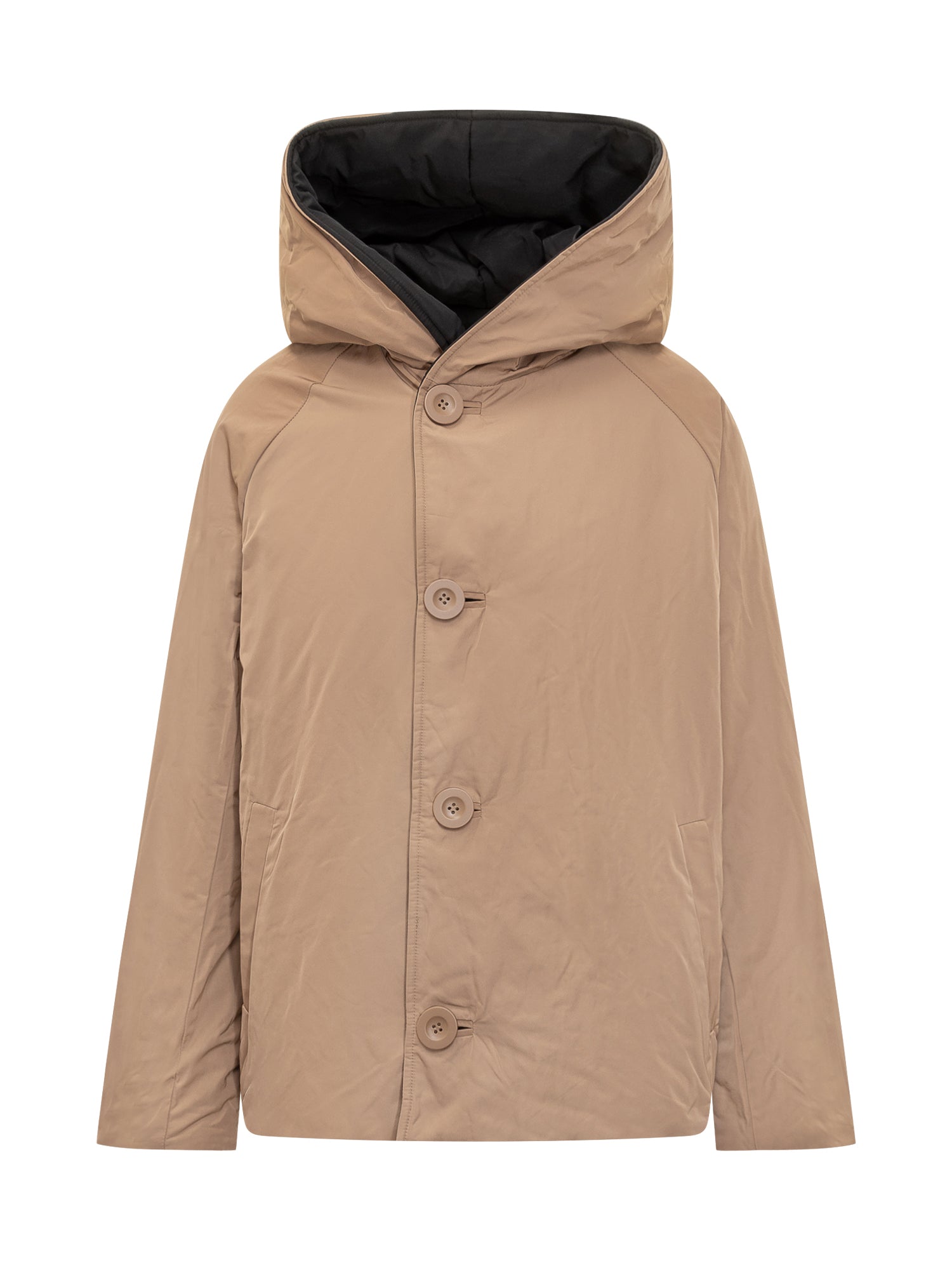 OOF Nyky 9006 reversible jacket with hood and button closure.