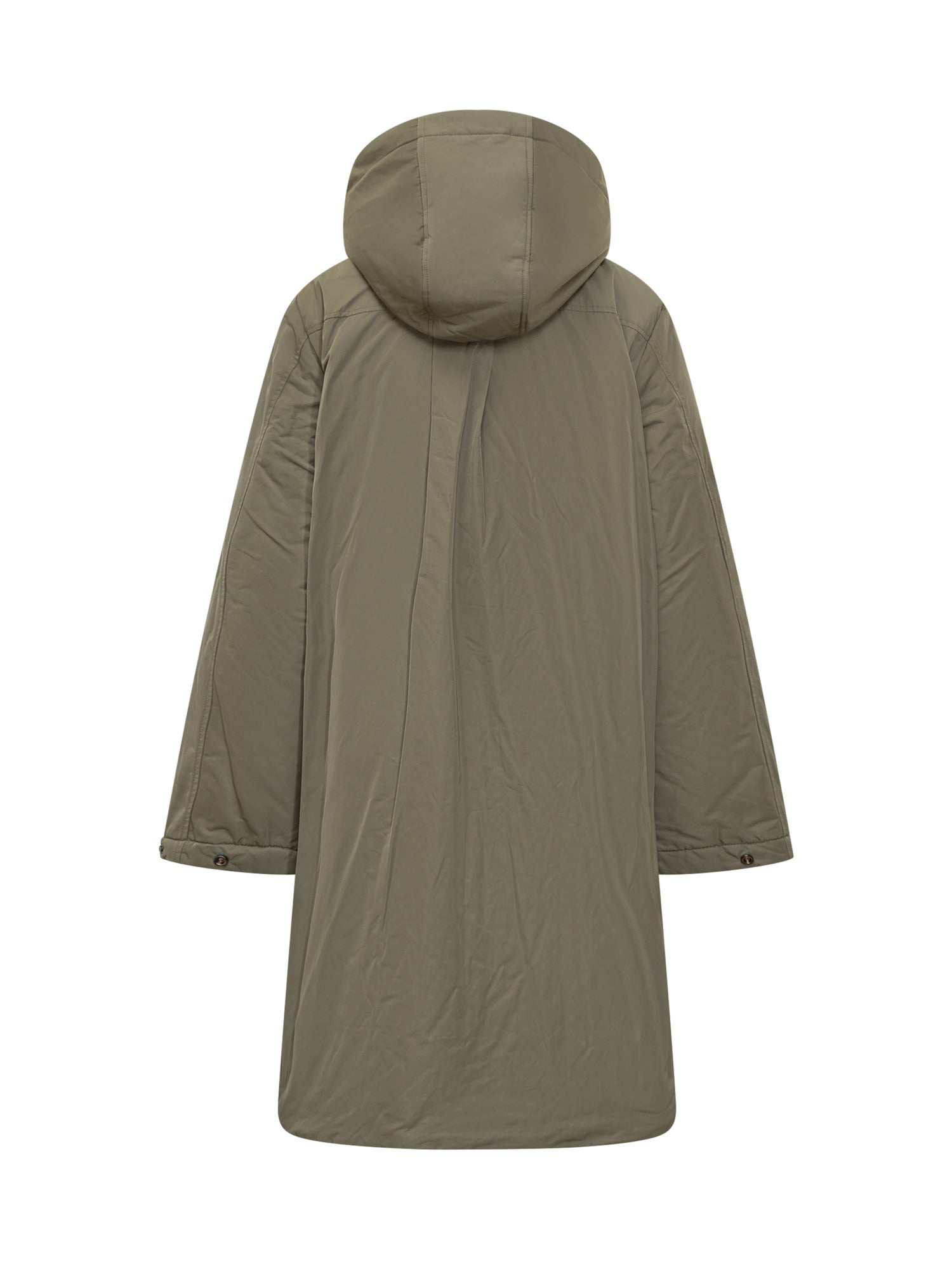 OOF-NYKY 9312 long jacket with hood and zip closure. Made from technical fabric with large front pockets, it provides comfort, protection, and a clean urban style for the cold season.