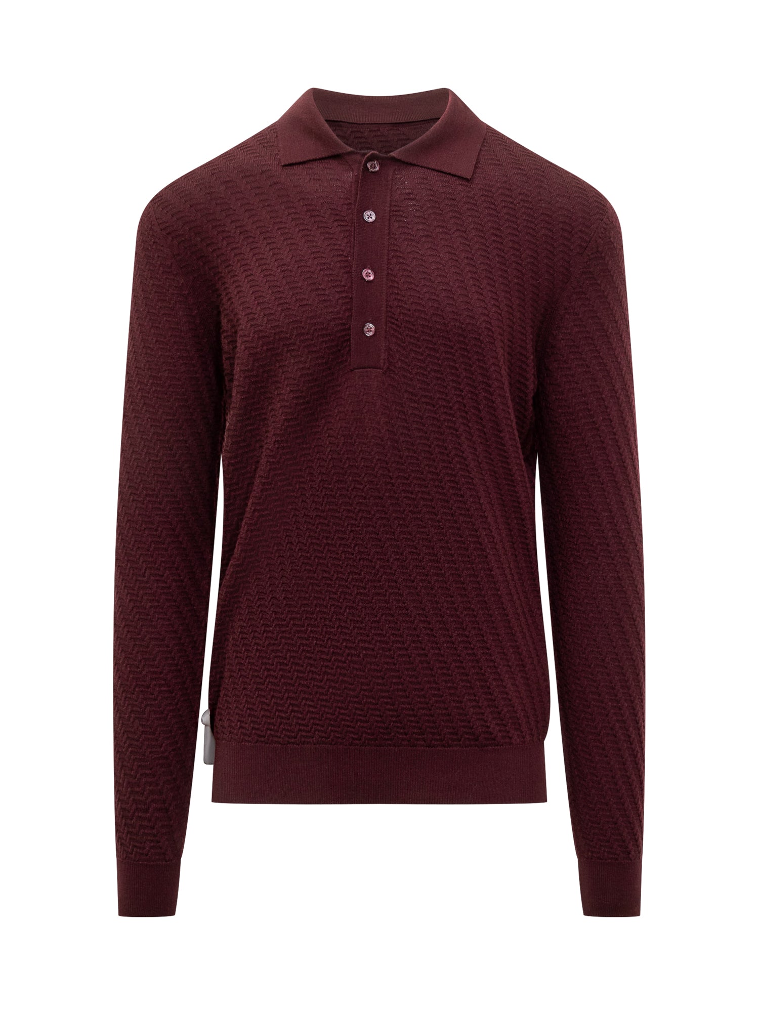 Paolo Pecora polo sweater in virgin wool with textured knit. Classic collar and front buttons.