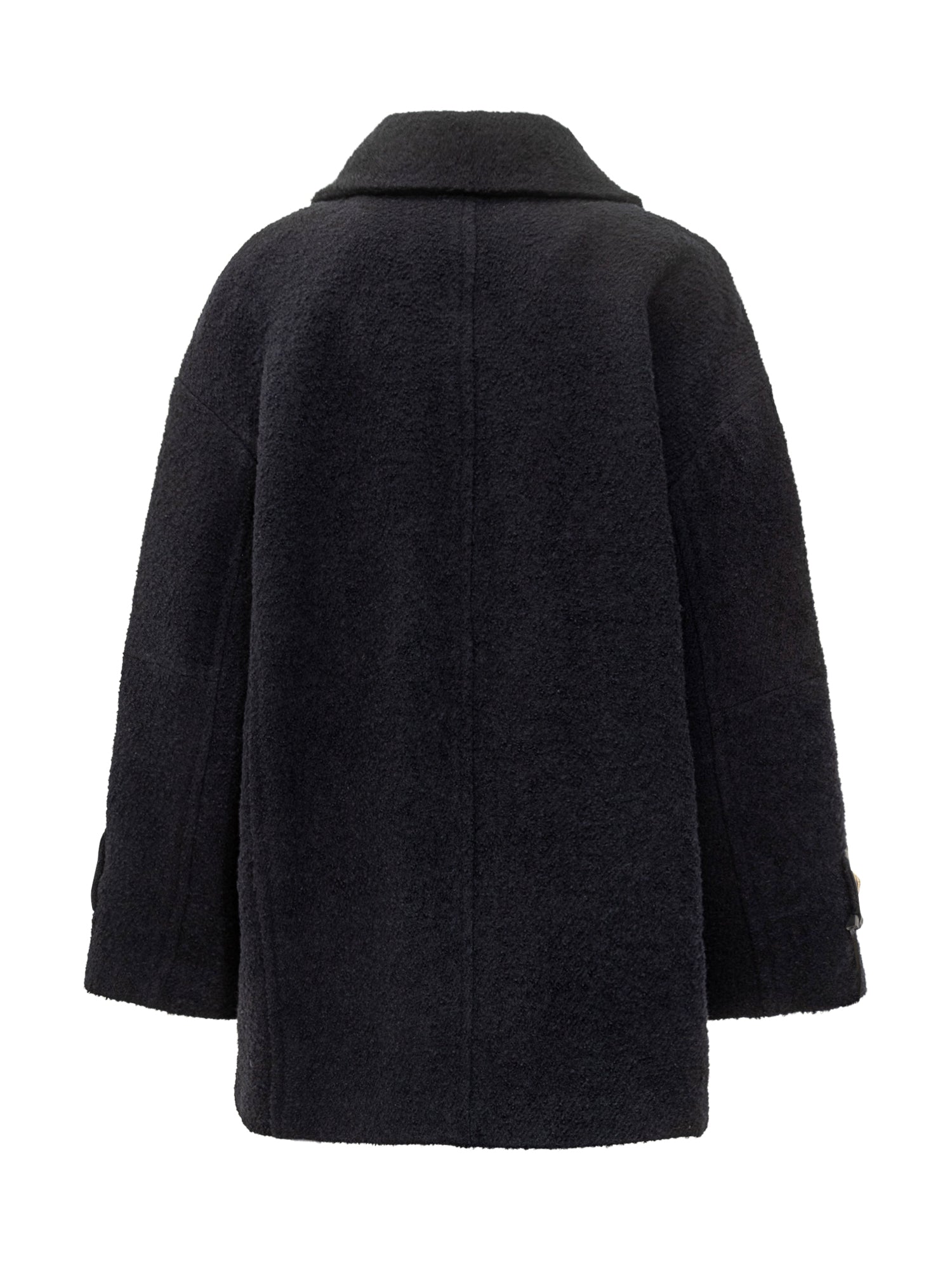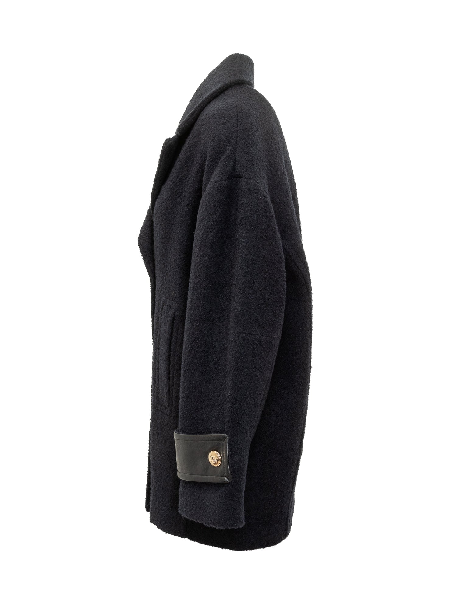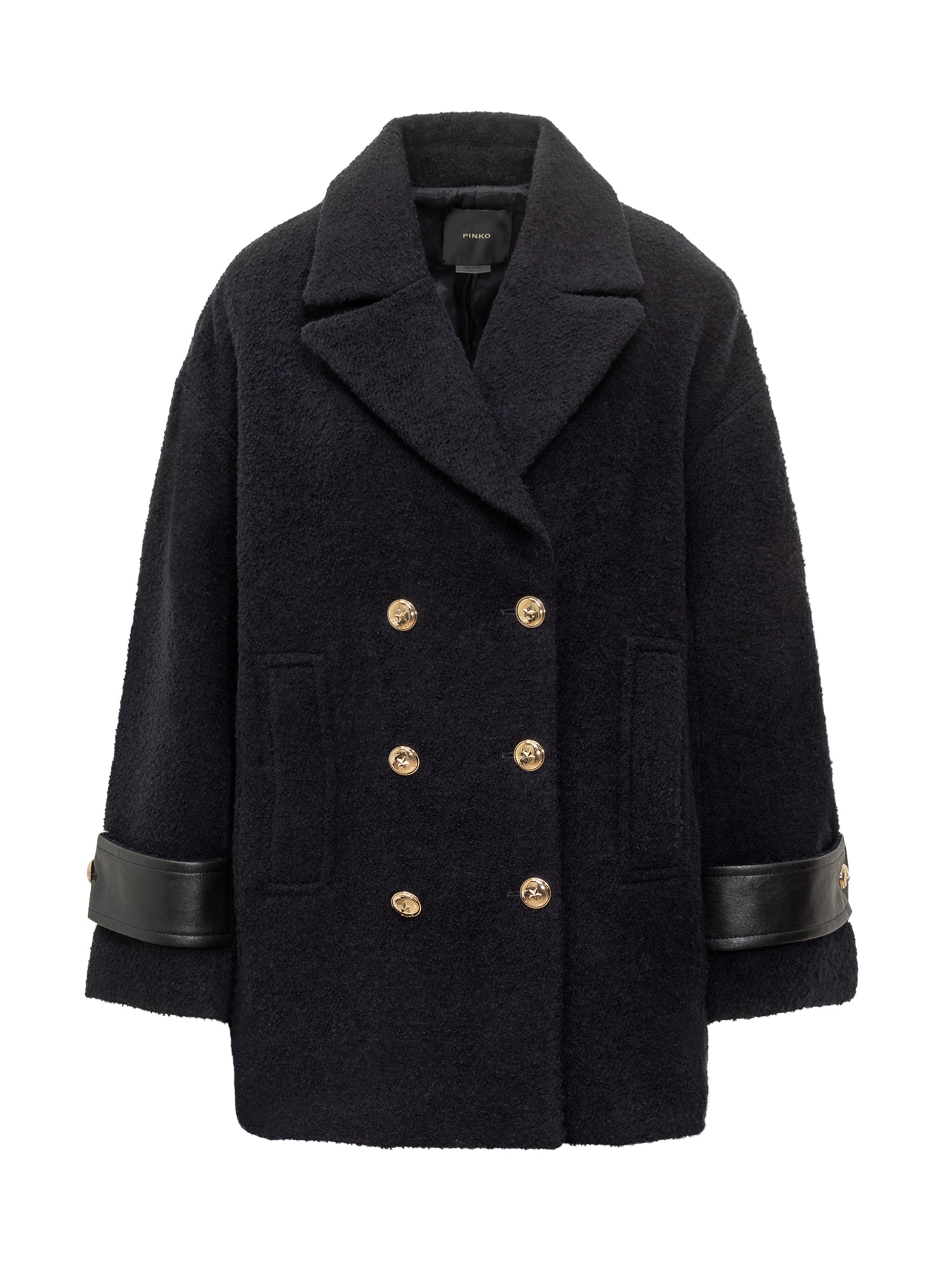 Pinko Canederli coat in teddy-effect fabric with double-breasted design, gold buttons and leather inserts on the sleeves.