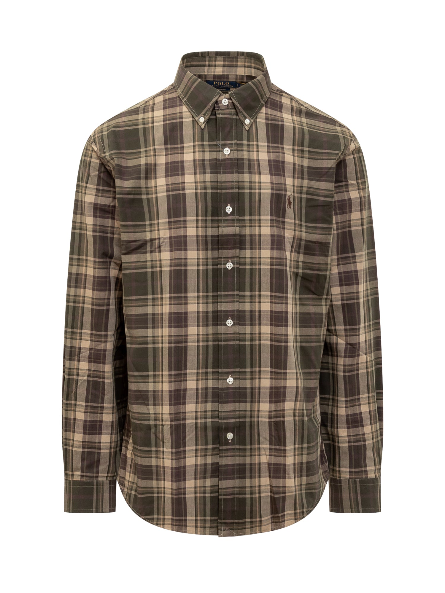 Cotton long sleeve shirt. Button down collar. Button down closure. Cuffs with buttons. Embroidered logo on the chest. All over check pattern.