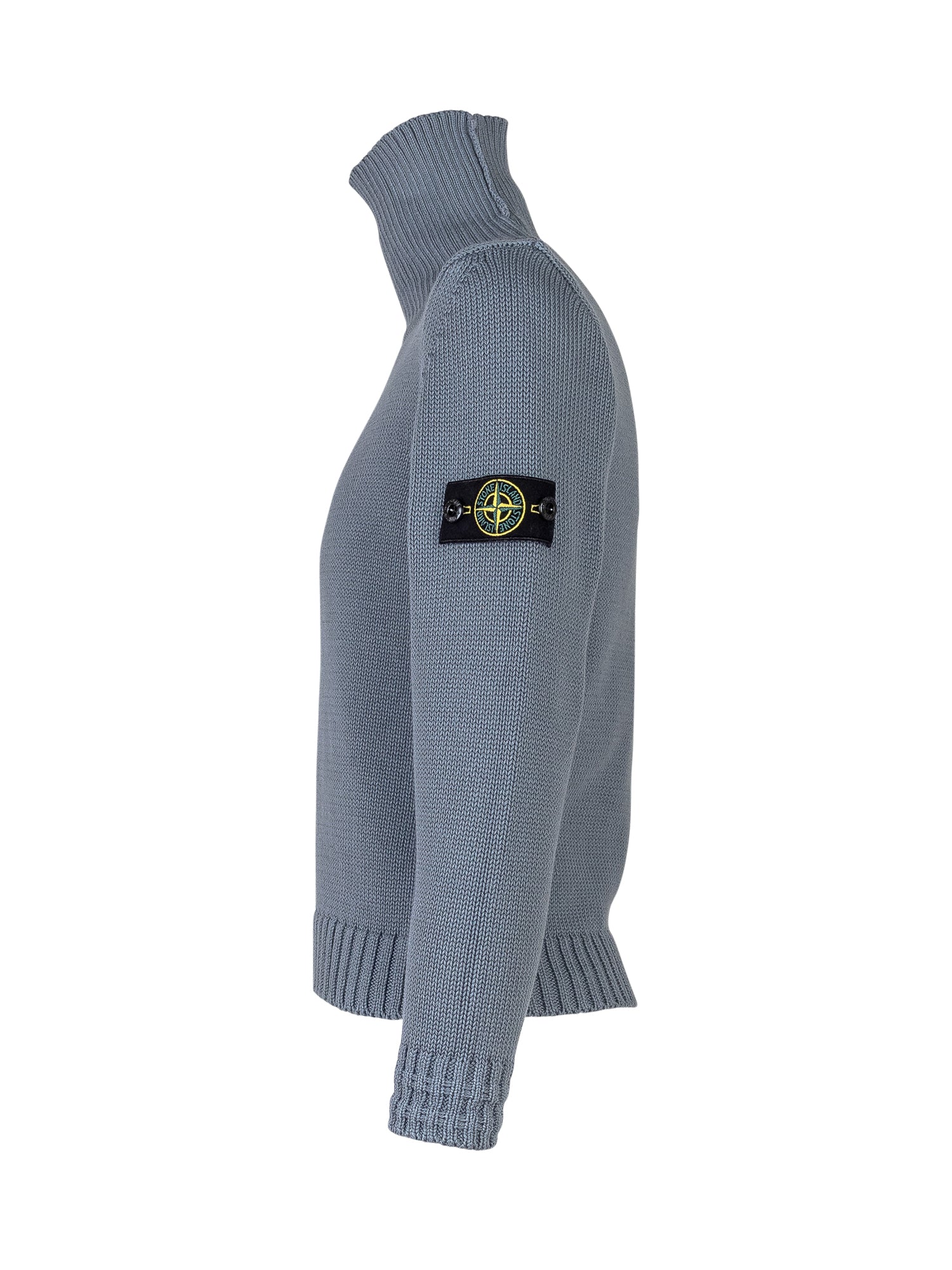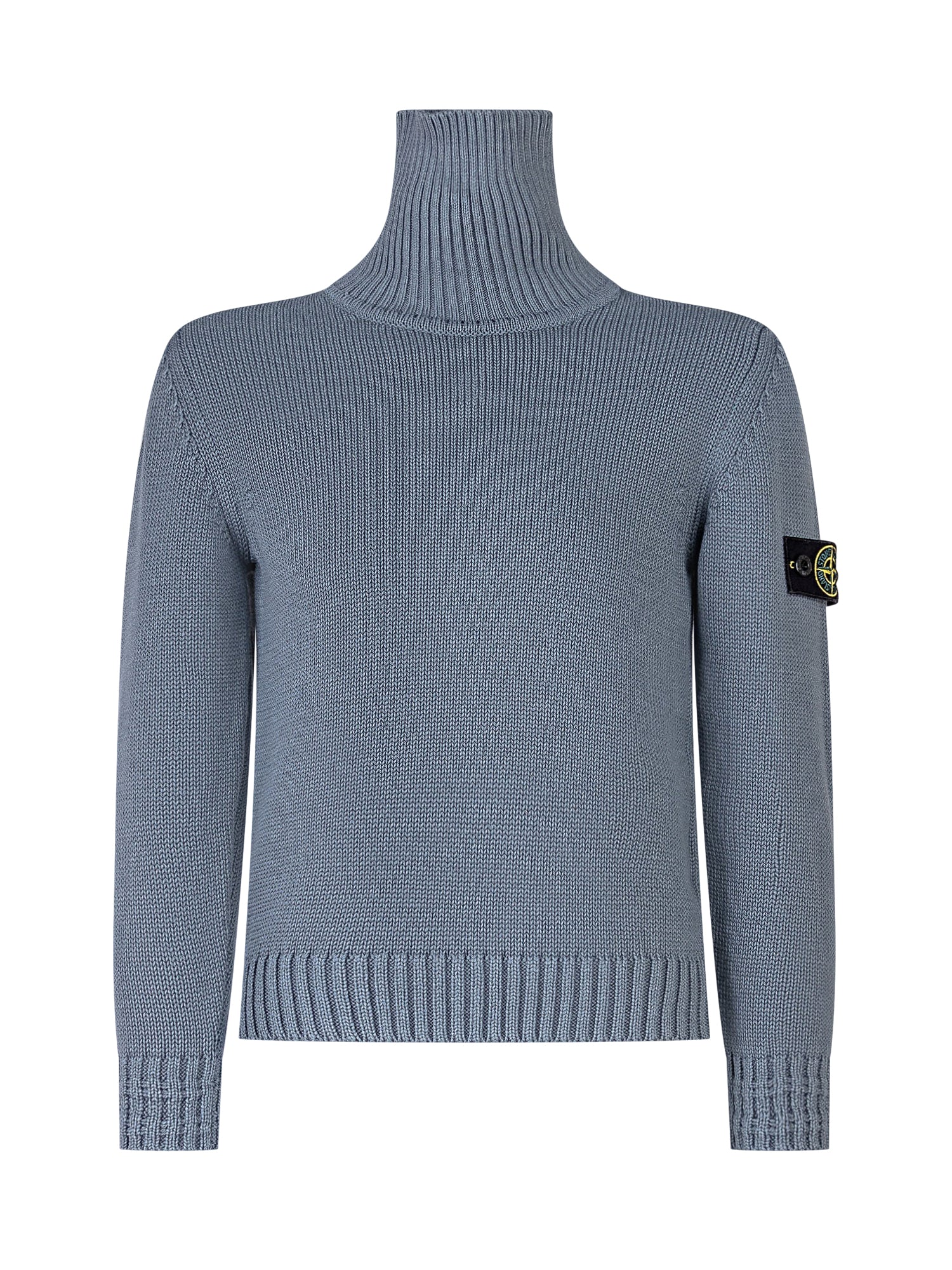 Stone Island turtleneck in light blue cotton with ribbed high collar, long sleeves and ribbed trims.