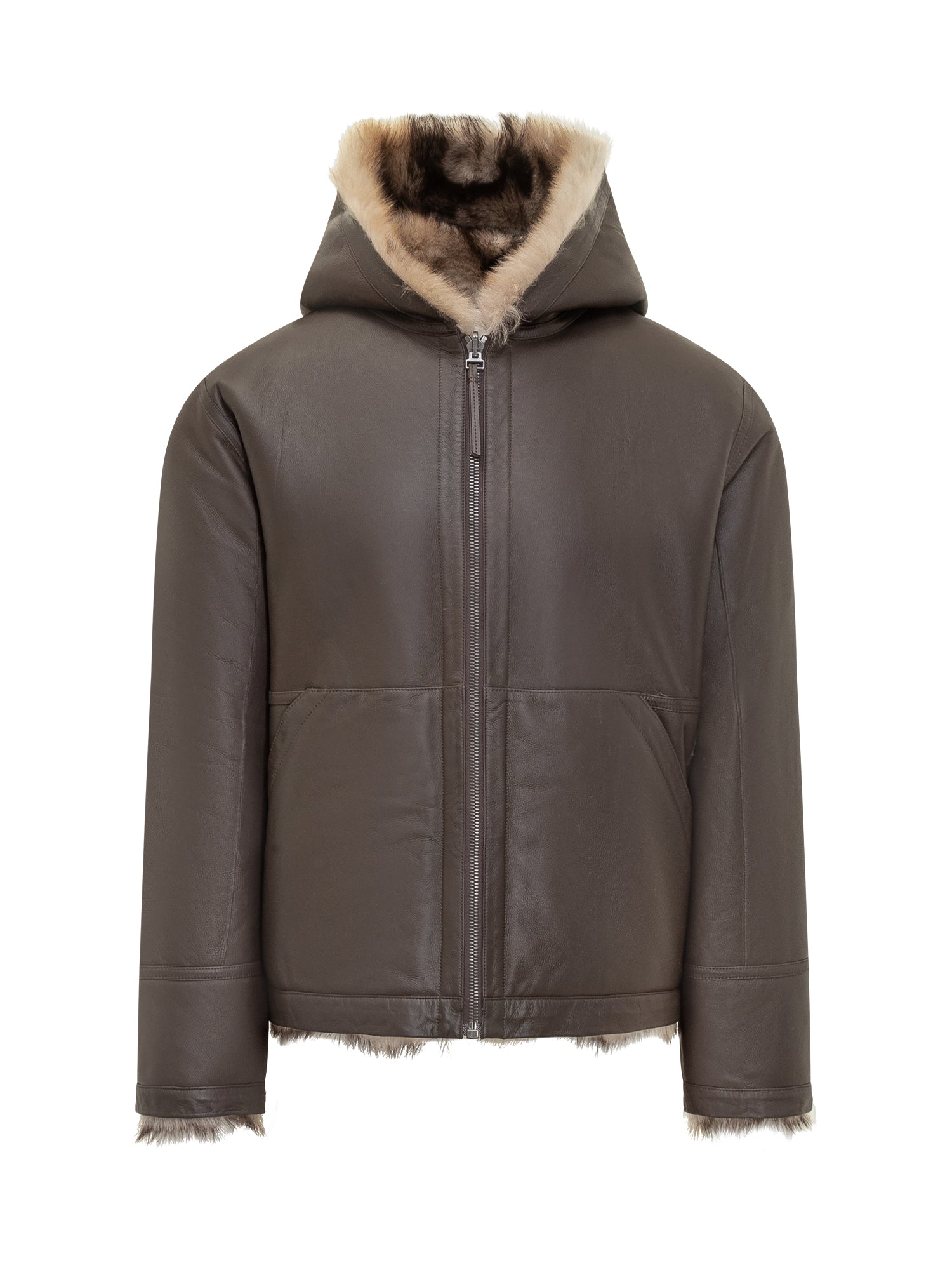 Yves Salomon 100% lamb shearling hooded jacket, soft and warm.