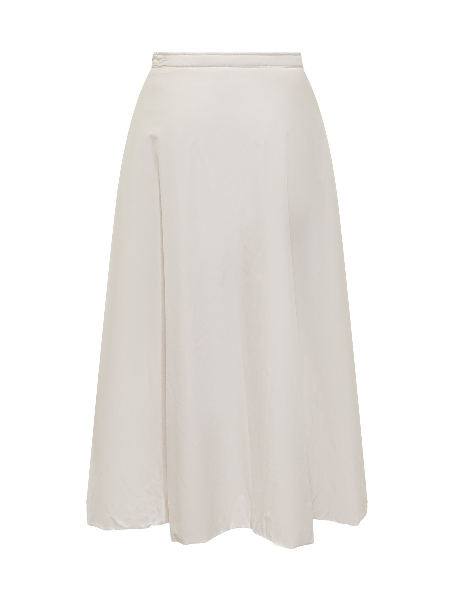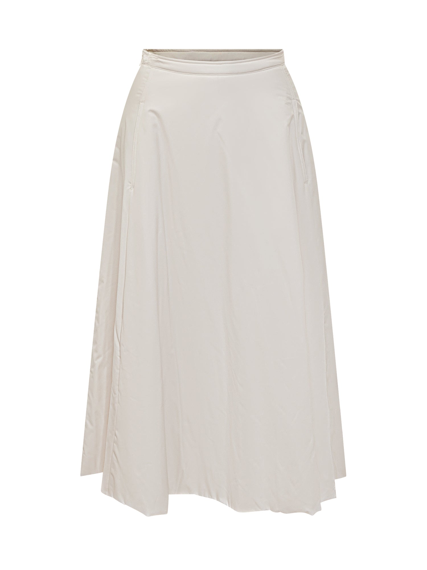 Add cream midi skirt in lightweight technical fabric with flared cut and side zip closure.