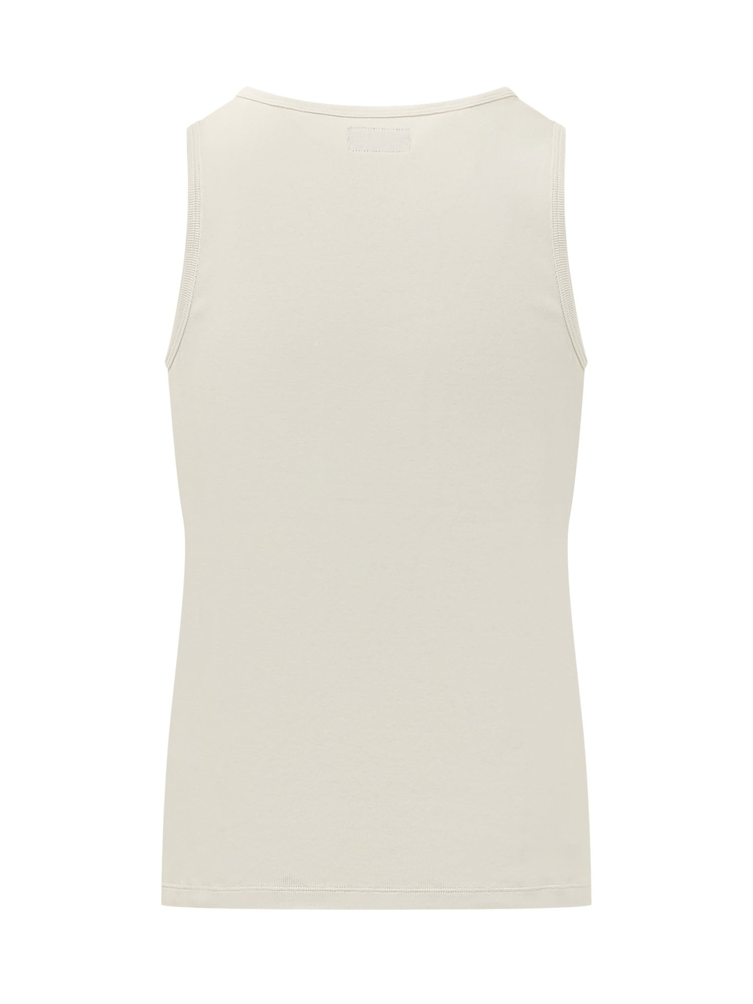 Sleeveless tank top with crew neck and small logo detail on the hem.