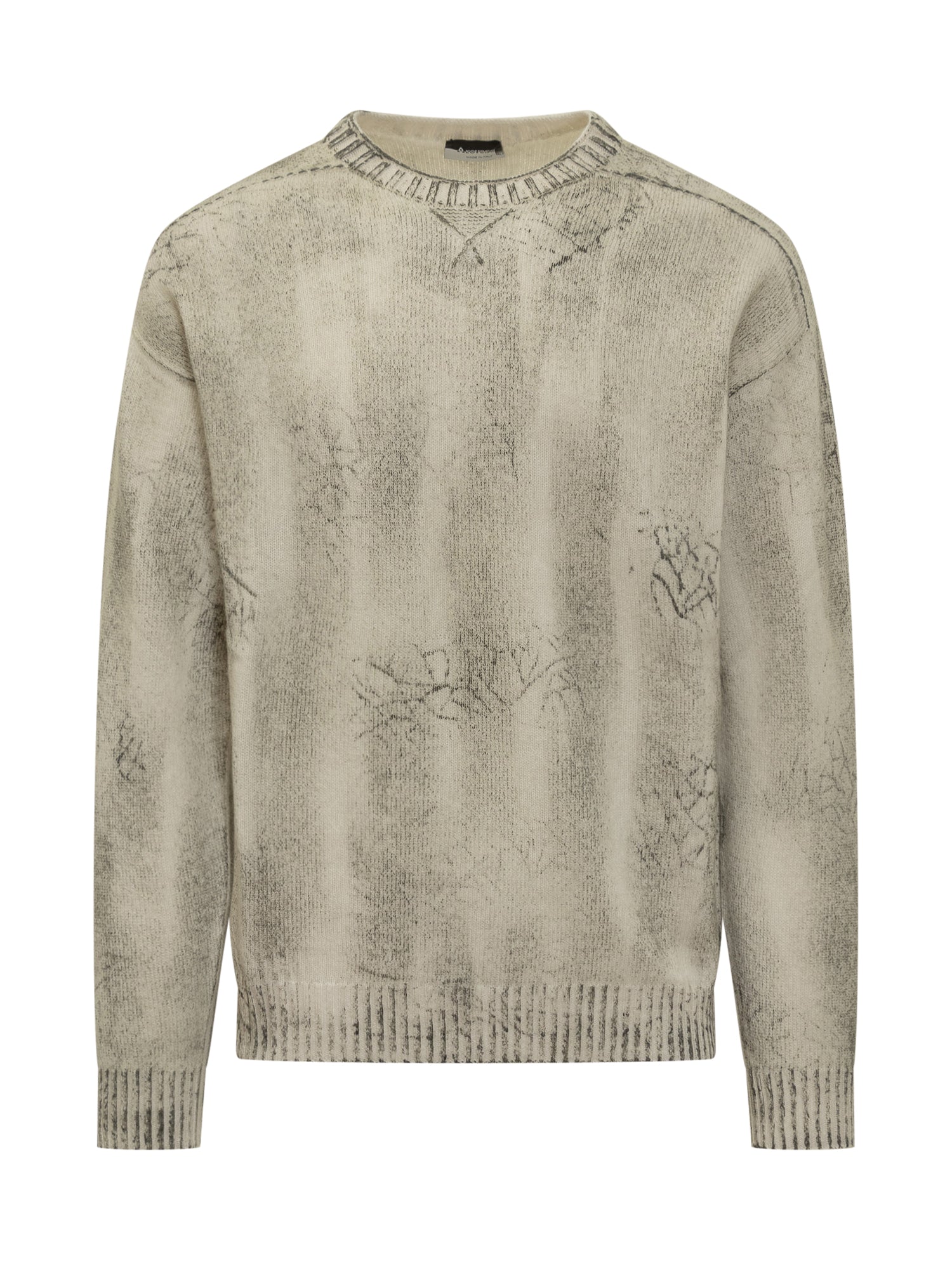 Arovescio beige sweater with vintage effect knit and ribbed details.