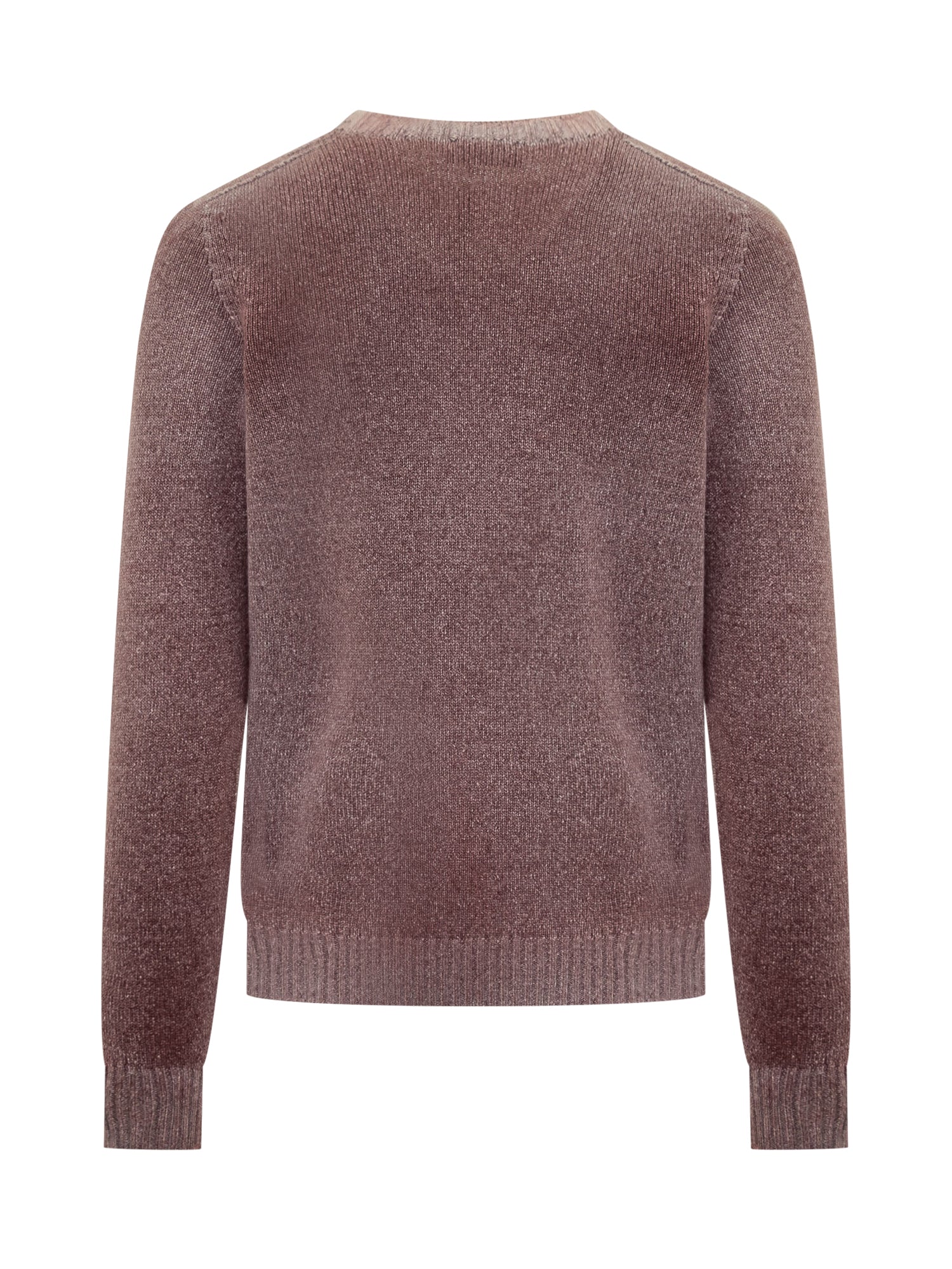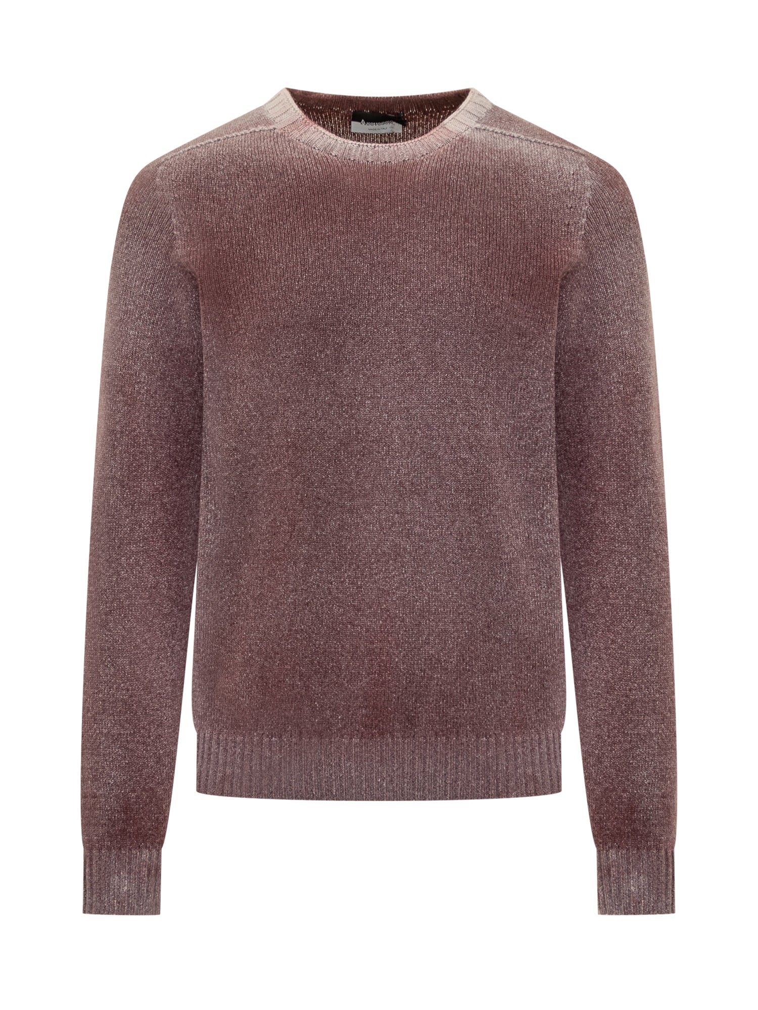 Arovescio sweater in soft faded pink knit with crew neck and ribbed details.