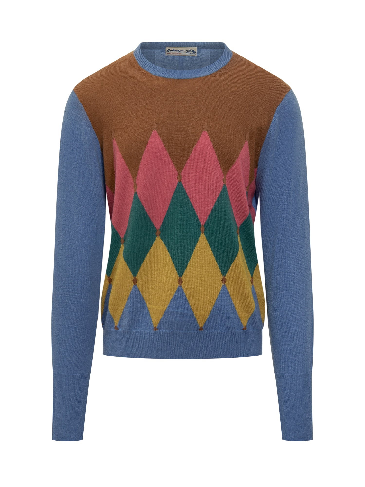 Ballantyne wool sweater with multicolor argyle pattern. Crew neck and long sleeves.