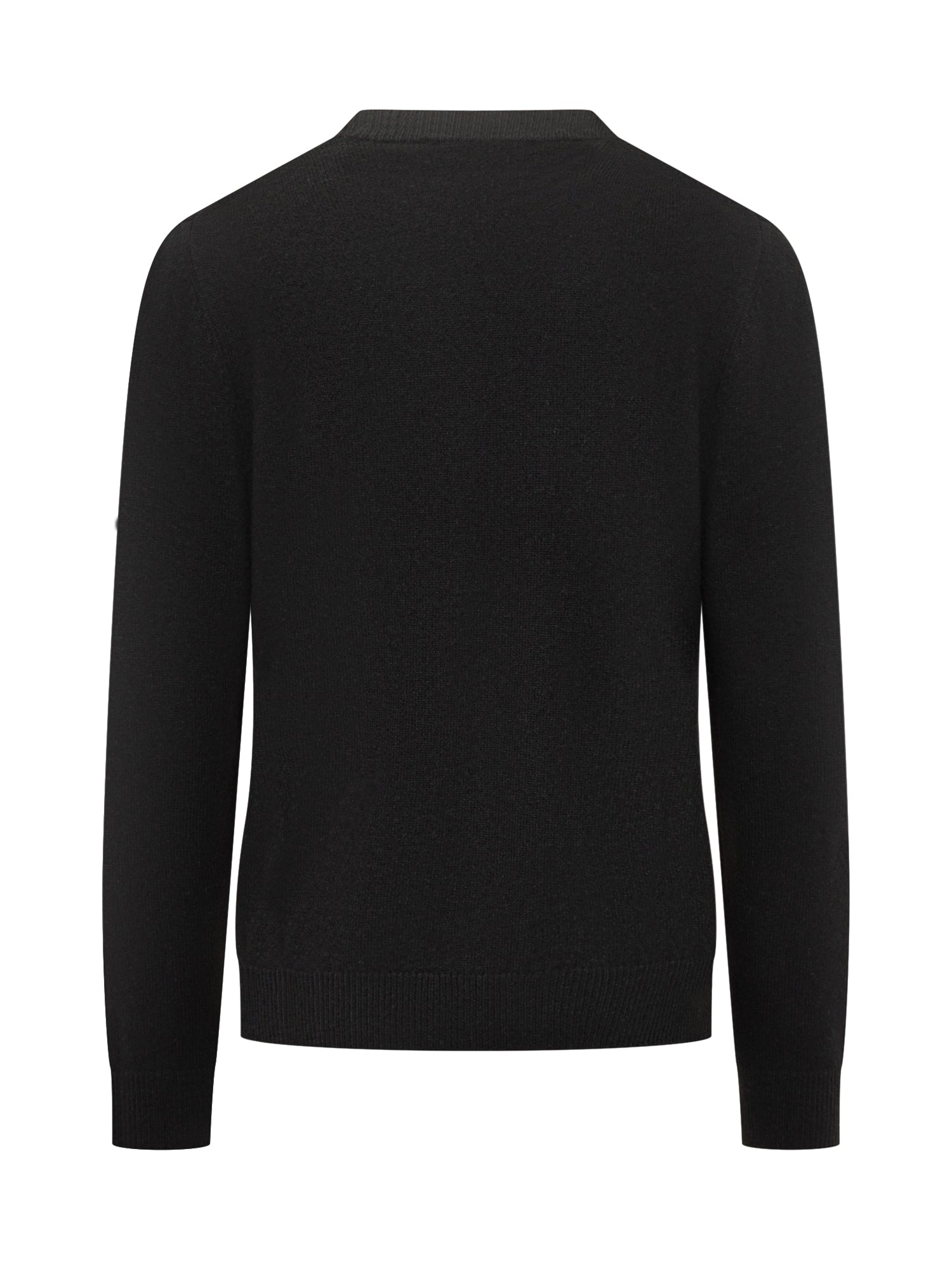 Ballantyne wool sweater with argyle pattern in black, grey and brown tones. Classic crew neck and long sleeves.