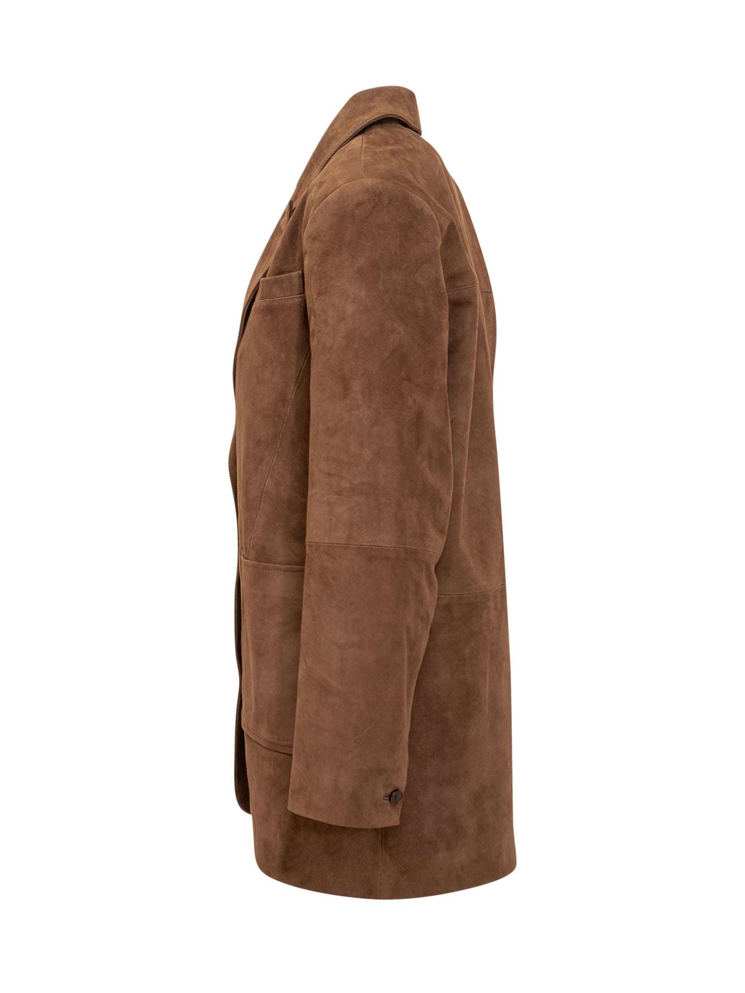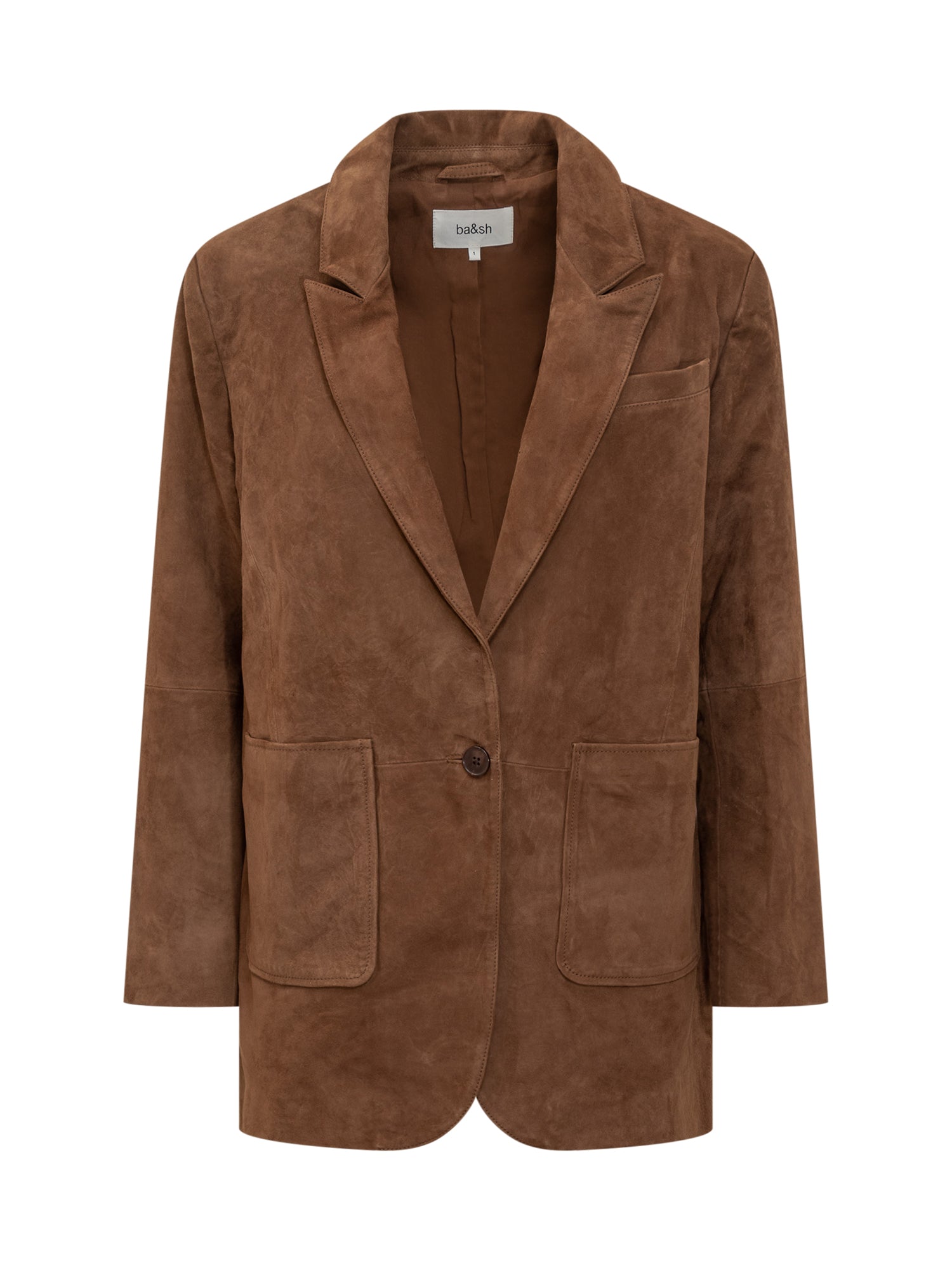 Ba&sh brown suede leather blazer with button closure and patch pockets.
