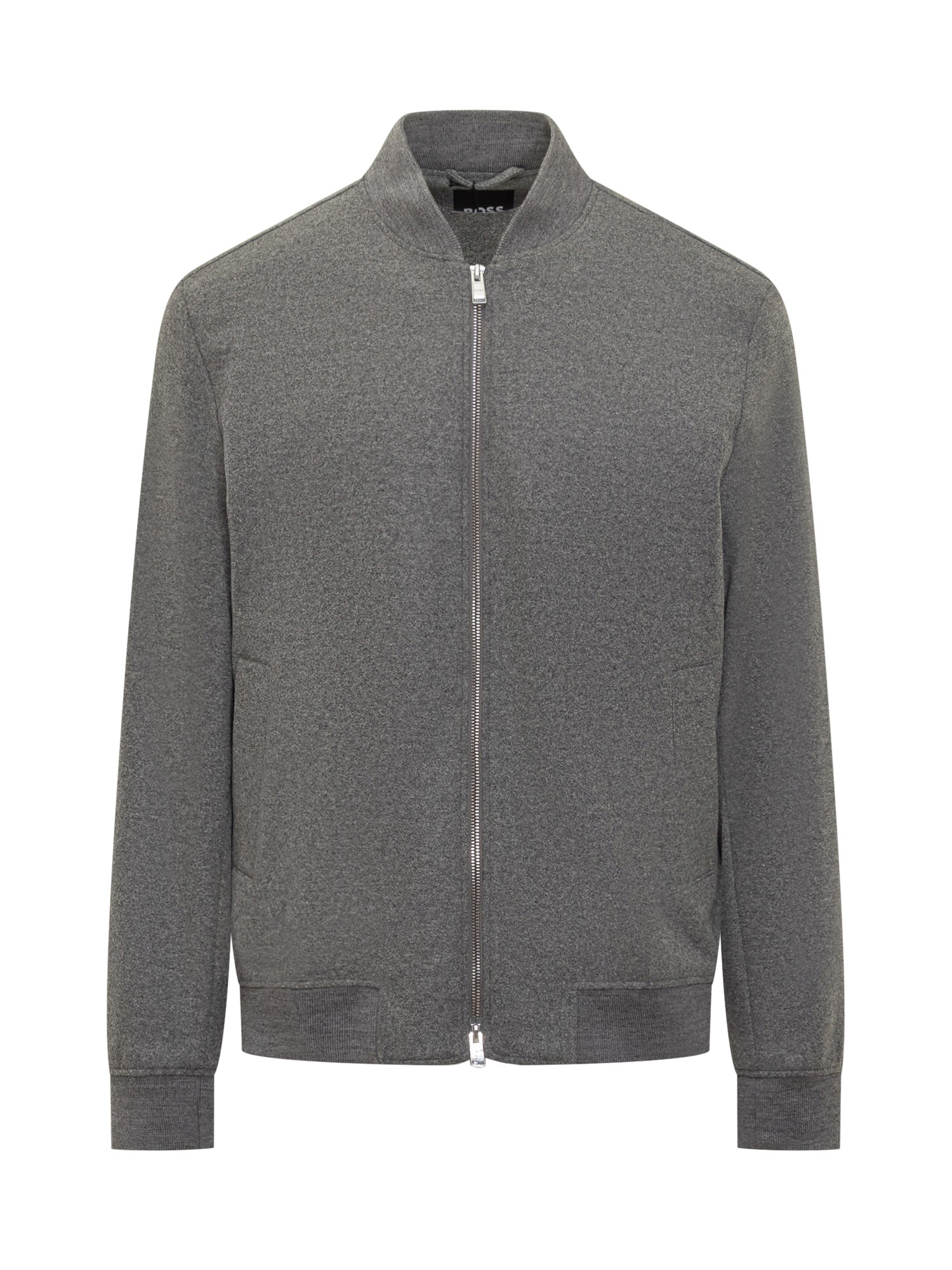 Boss grey jacket featuring a full zip closure and ribbed collar.