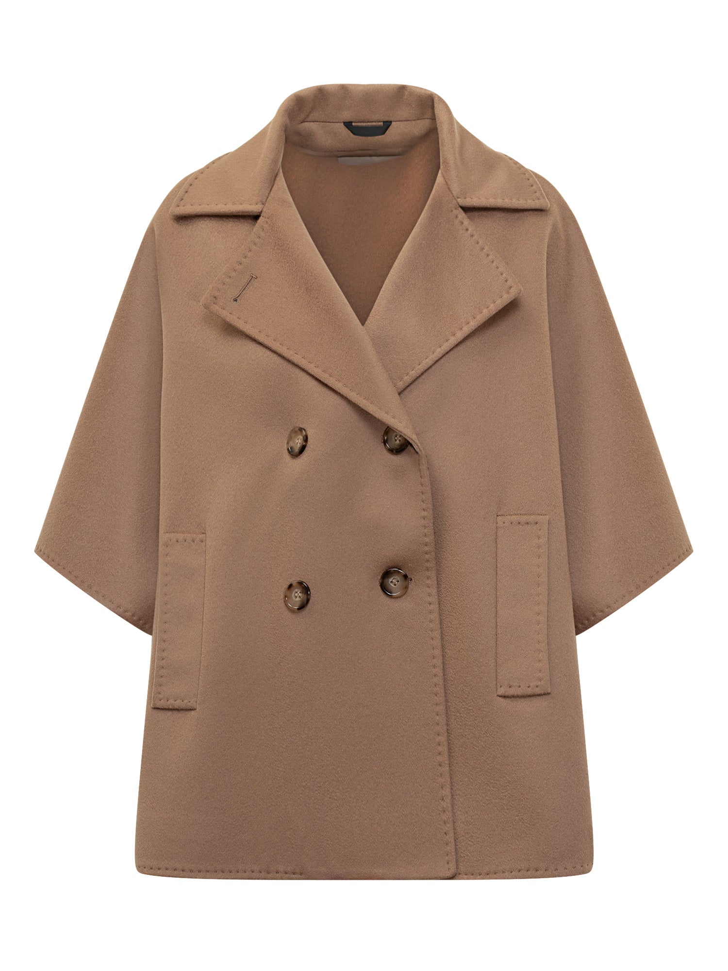 Cinzia Rocca short coat in camel cashmere with flared cut. Double-breasted design with classic lapels, wide sleeves and side pockets.