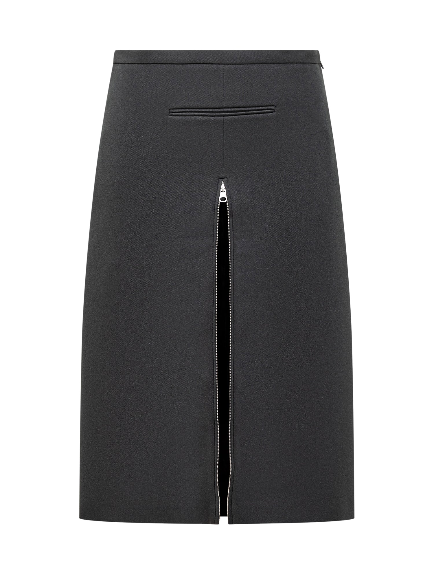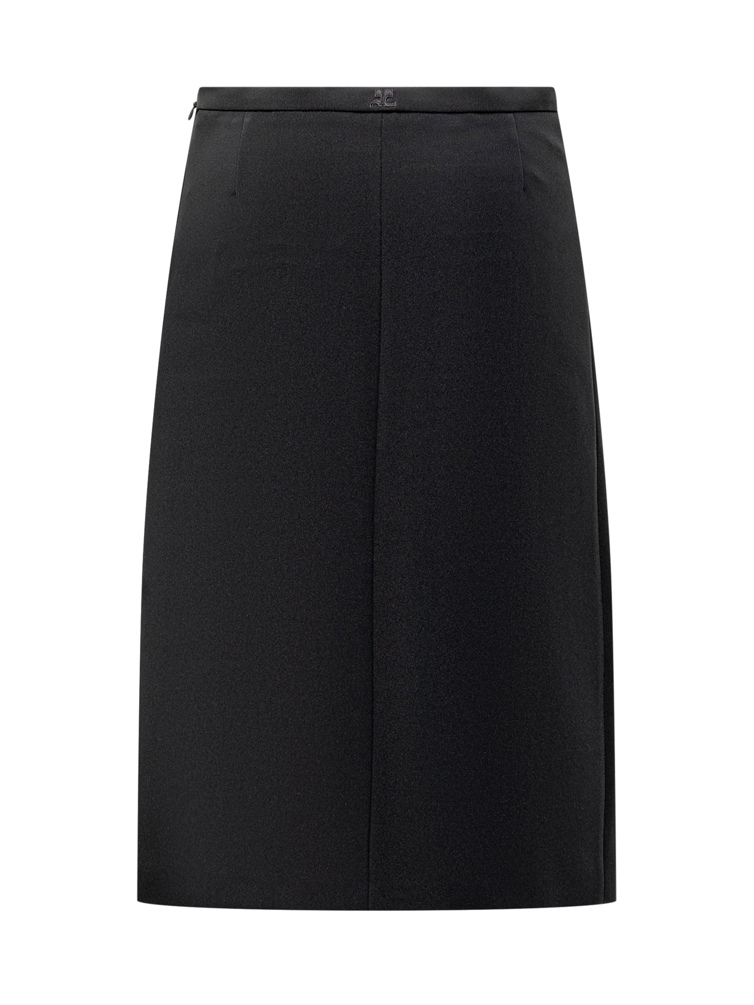 Black midi skirt. Split with zip on the front. Pocket at the front. Logo embroidered on the back. Closure with side zip.