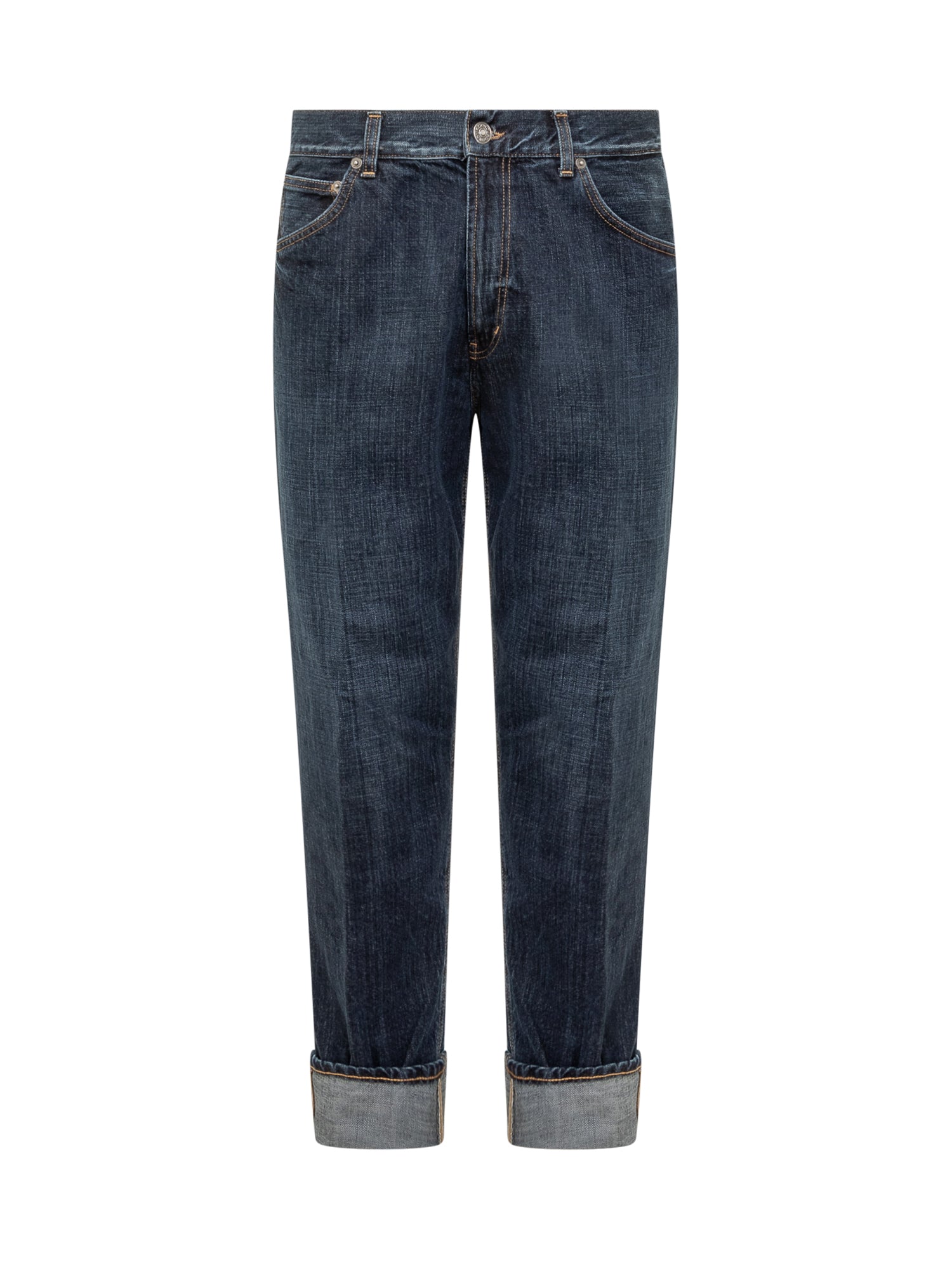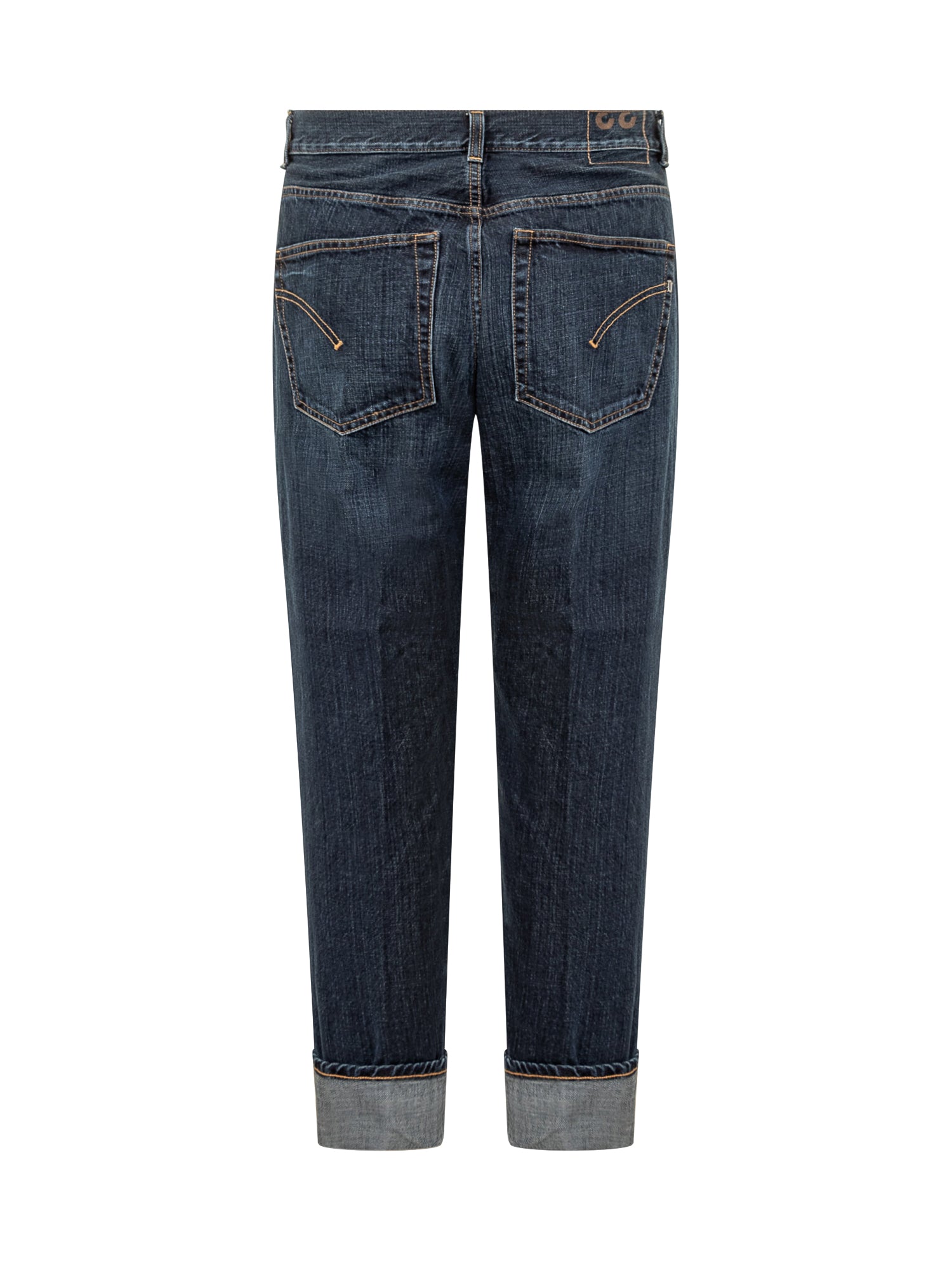 Dondup boyfriend jeans in blue denim with button and zip closure.