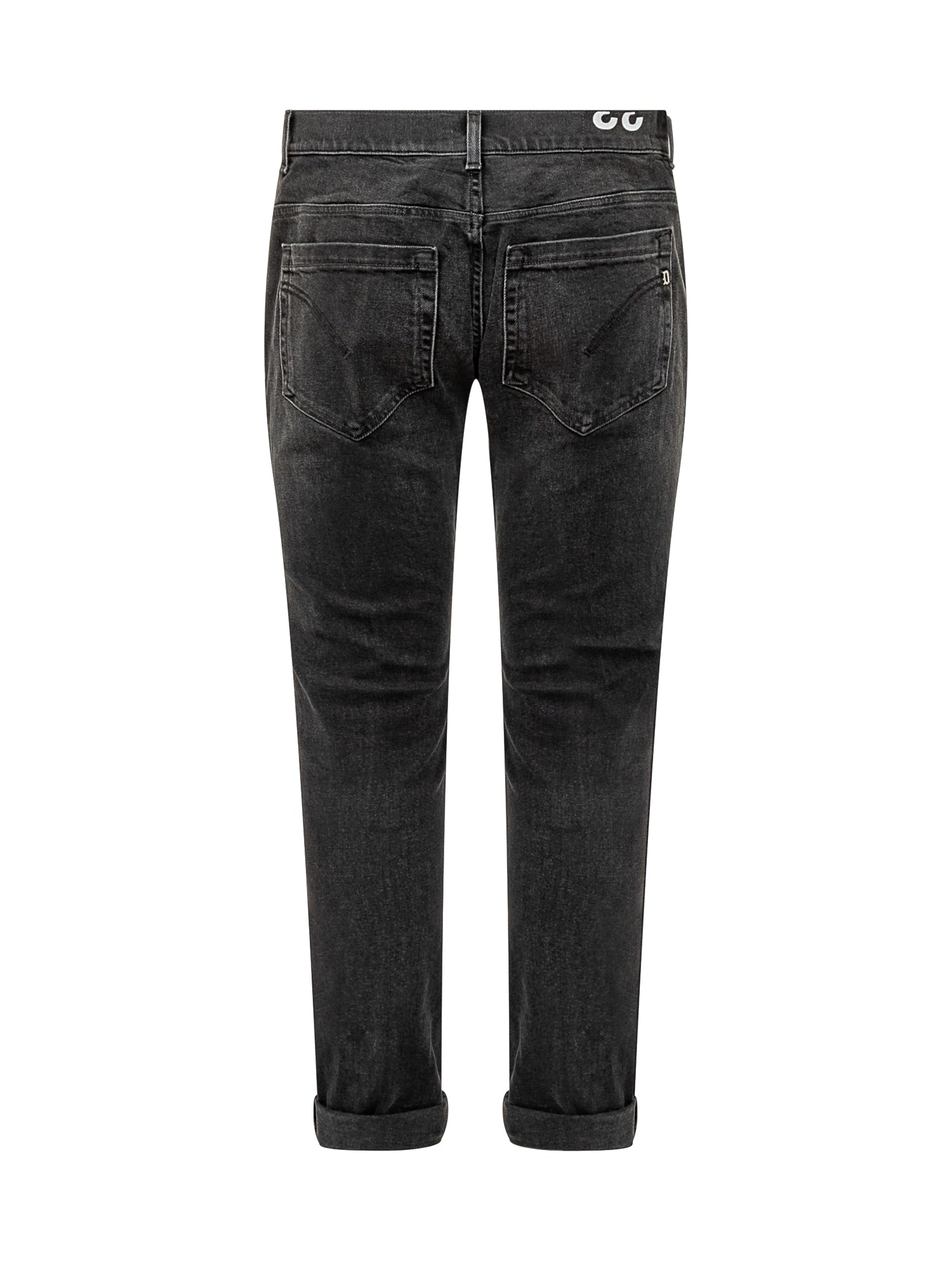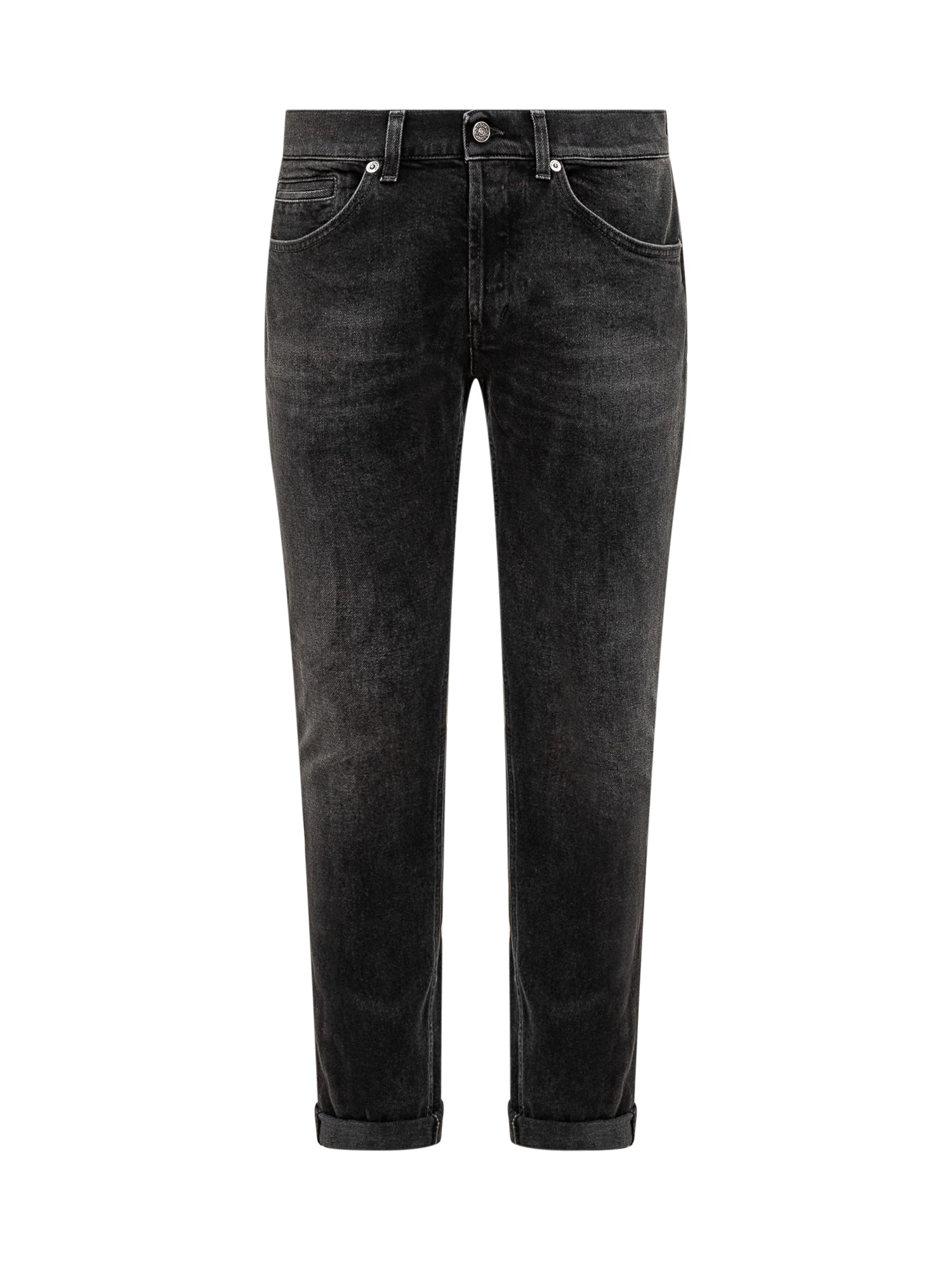Dondup slim jeans in washed black denim with button and zip closure.