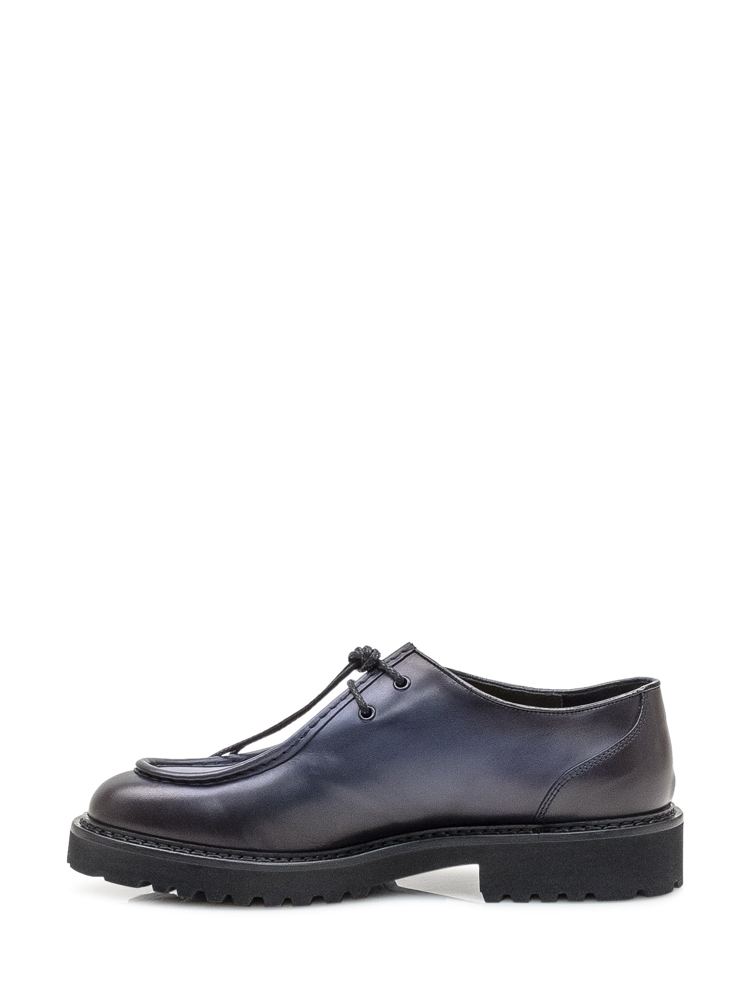 Parabout-style derby with a bold look, smooth upper and visible stitching.