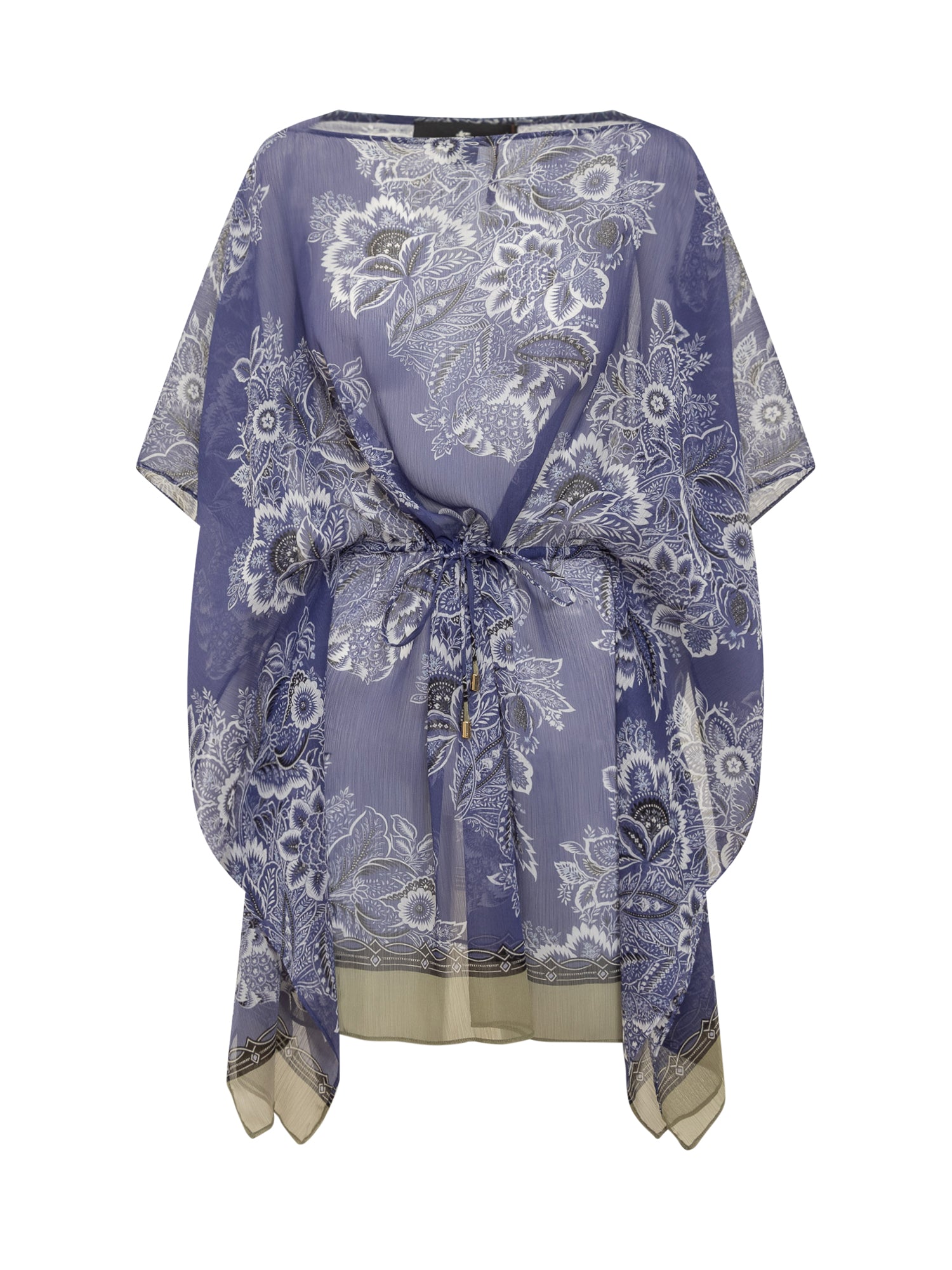 Mini beach dress. V-neckline. Belted closure.