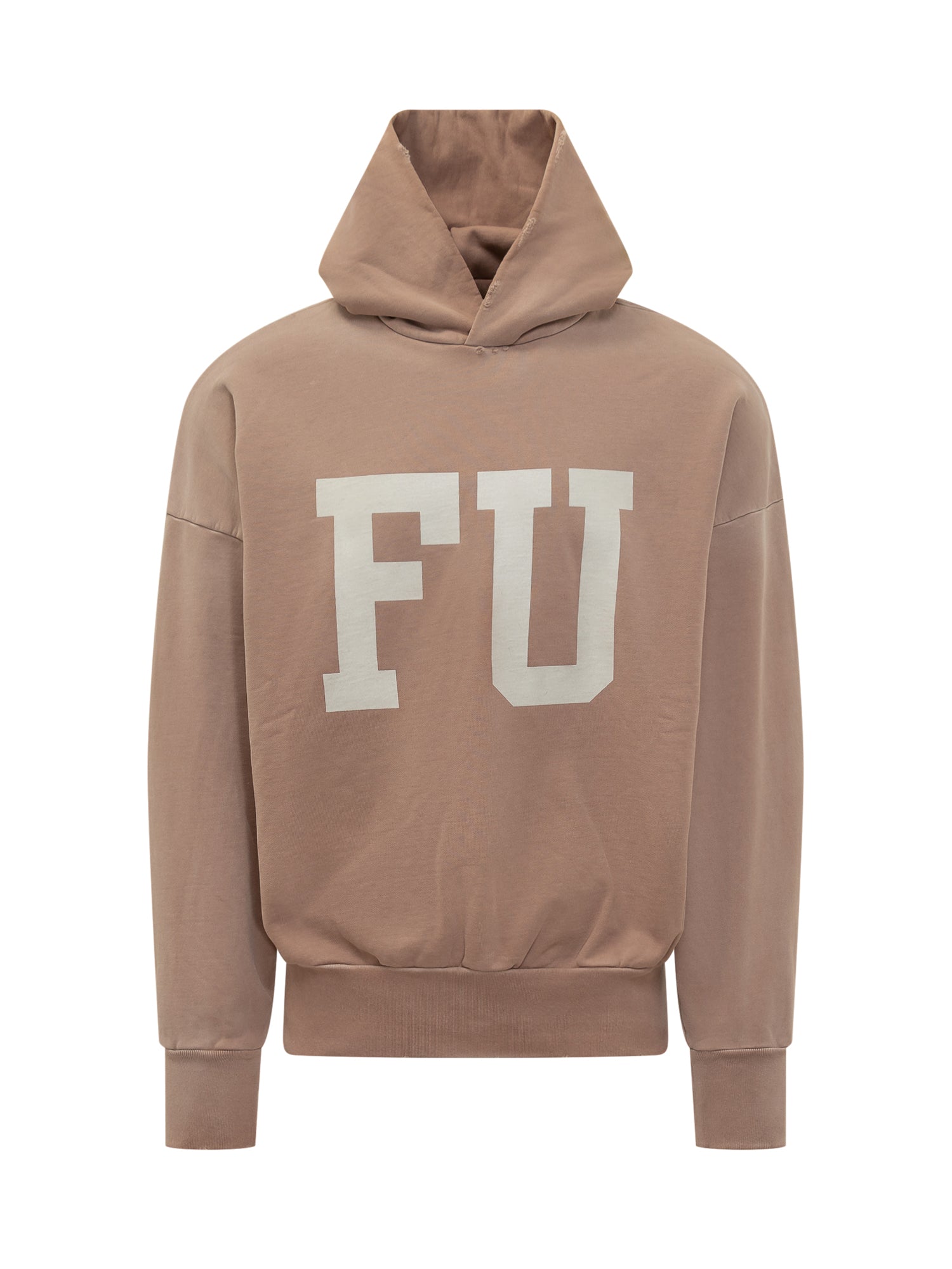 Fear of God pink cotton hoodie with contrasting front print. Oversized design with ribbed cuffs and hem.