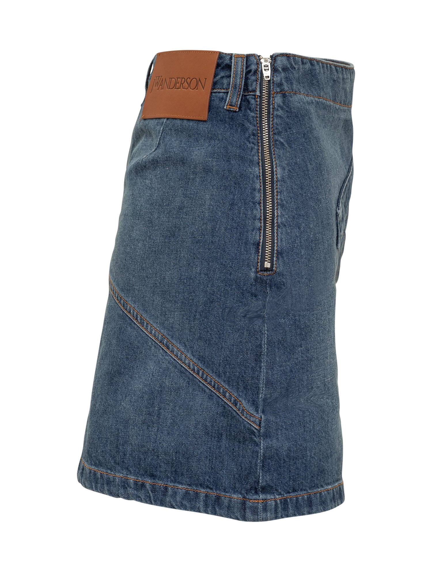 Denim mini skirt. Zipper closure on the side. Logo still sewn on. Logo patch at back.