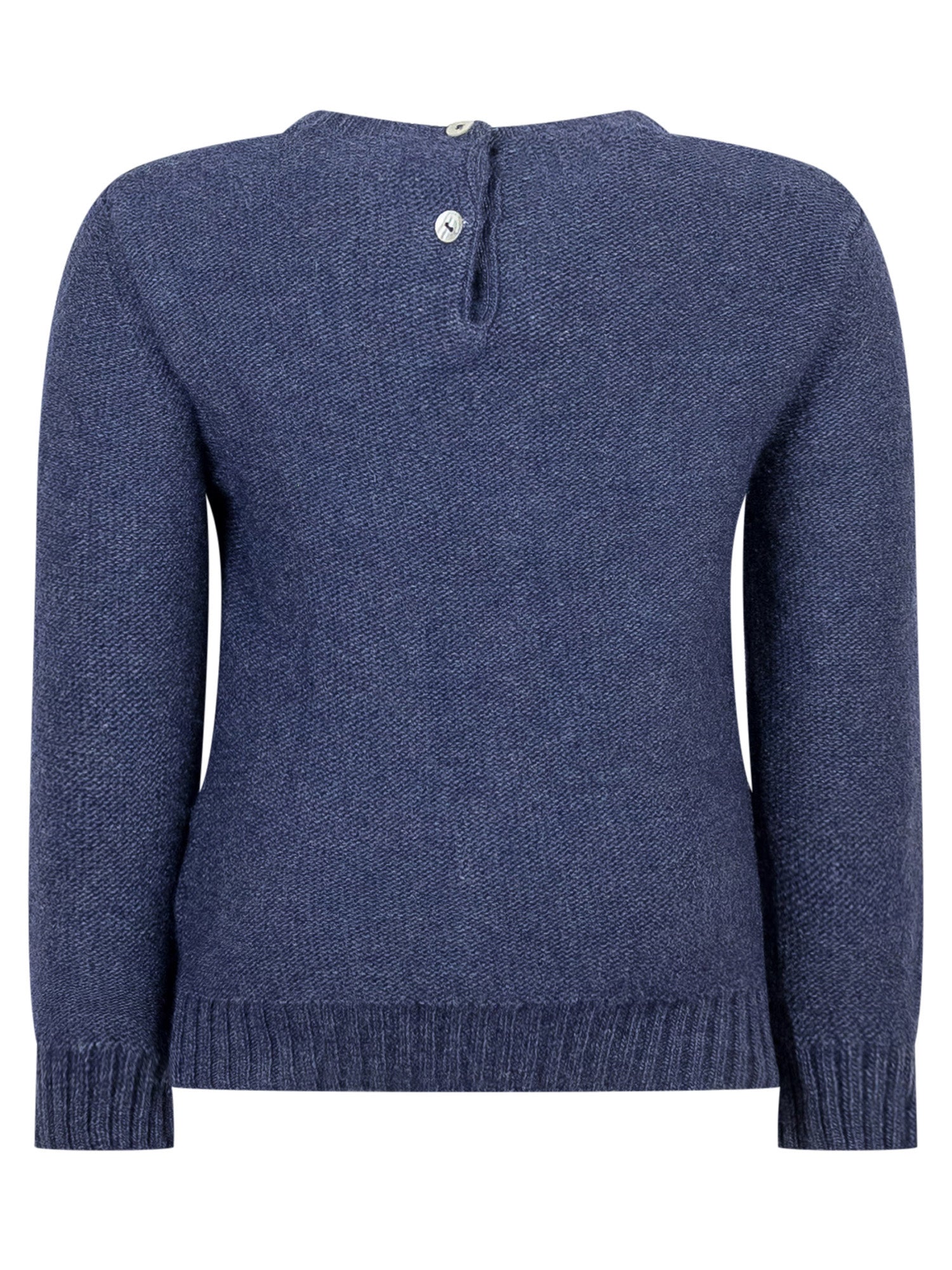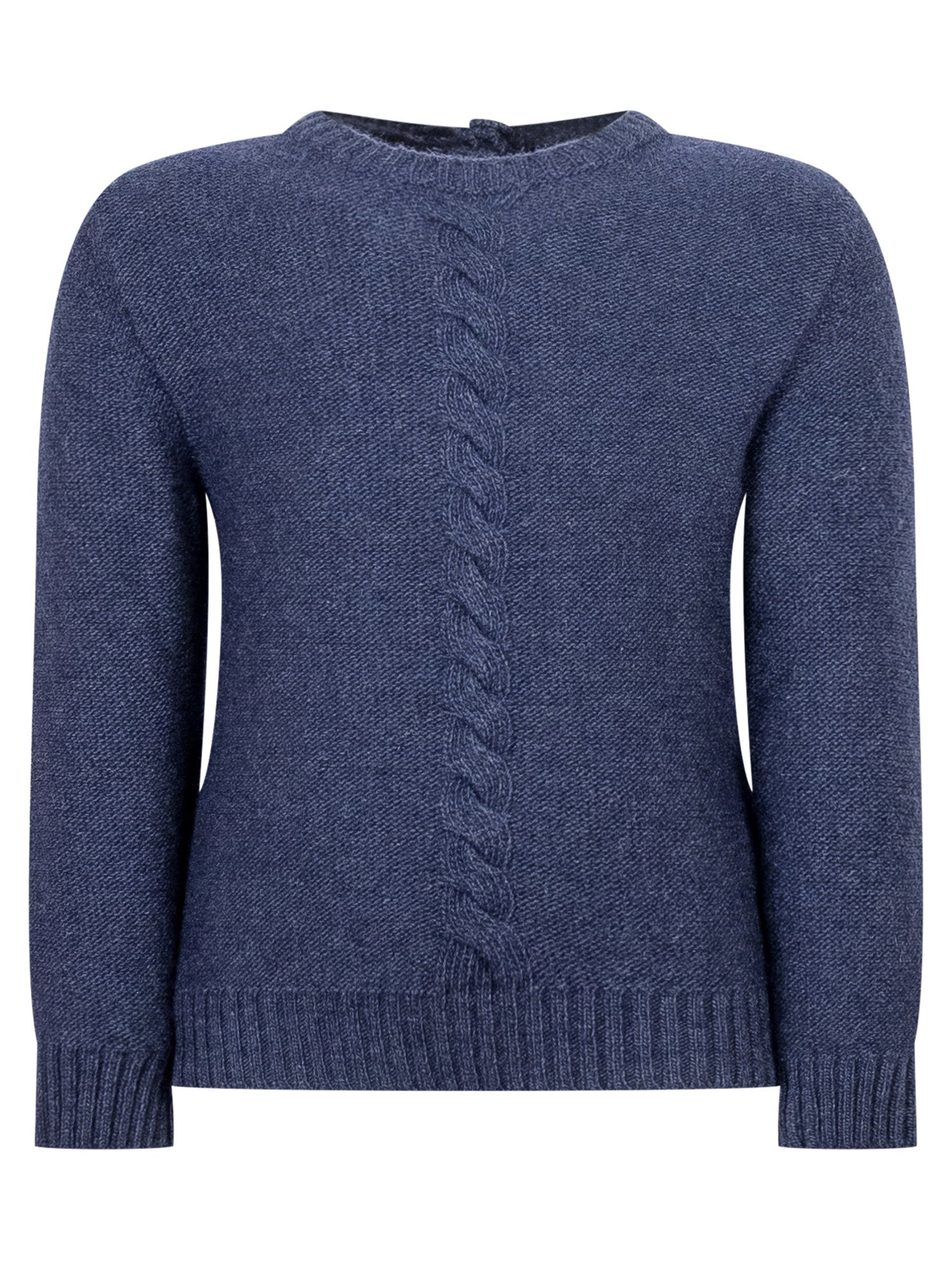 L Orso Bruno blue sweater featuring a central cable knit. Soft, warm and versatile.
