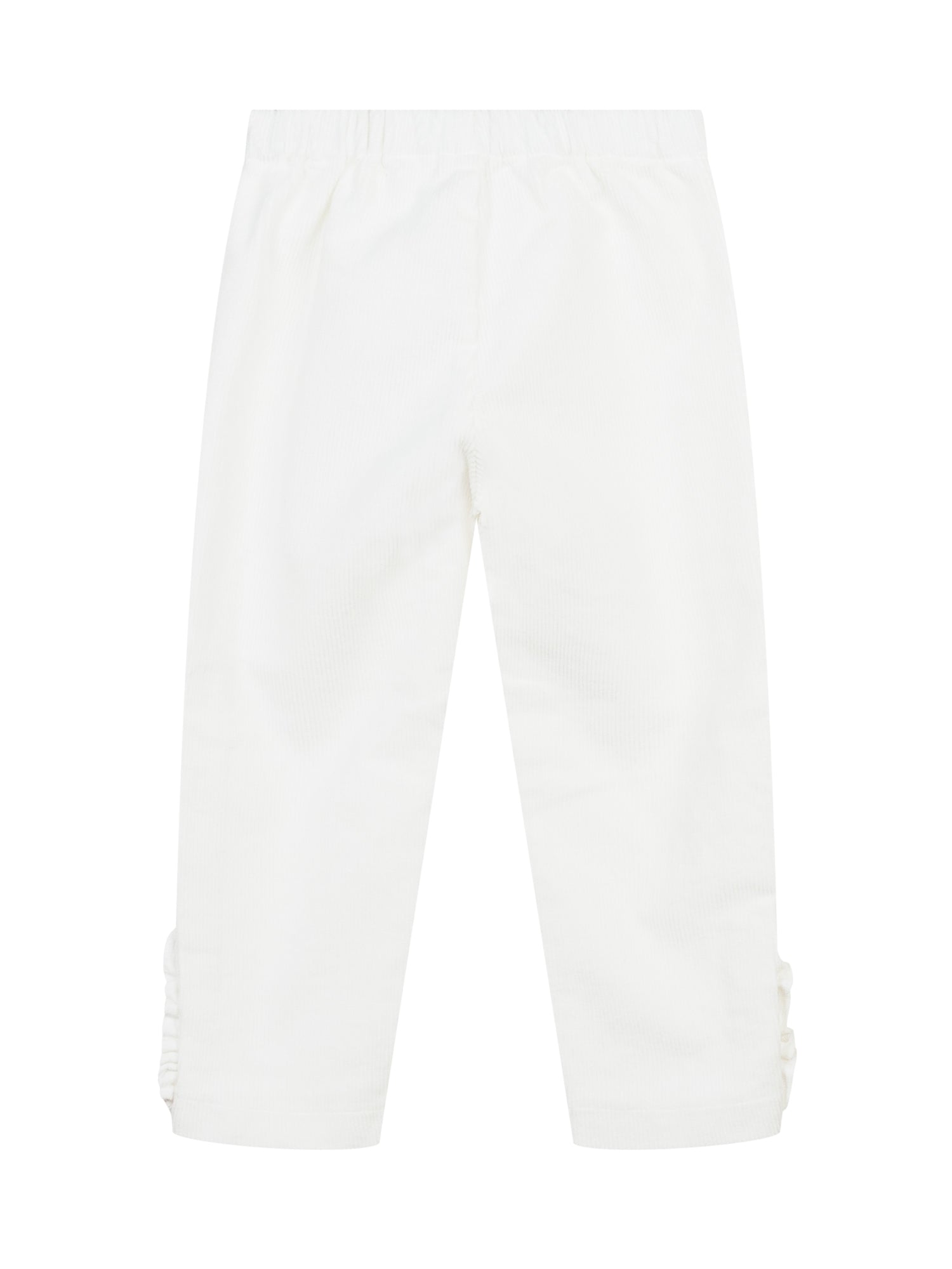 L Orso Bruno white corduroy pants with elastic waist and ruched ankle details.