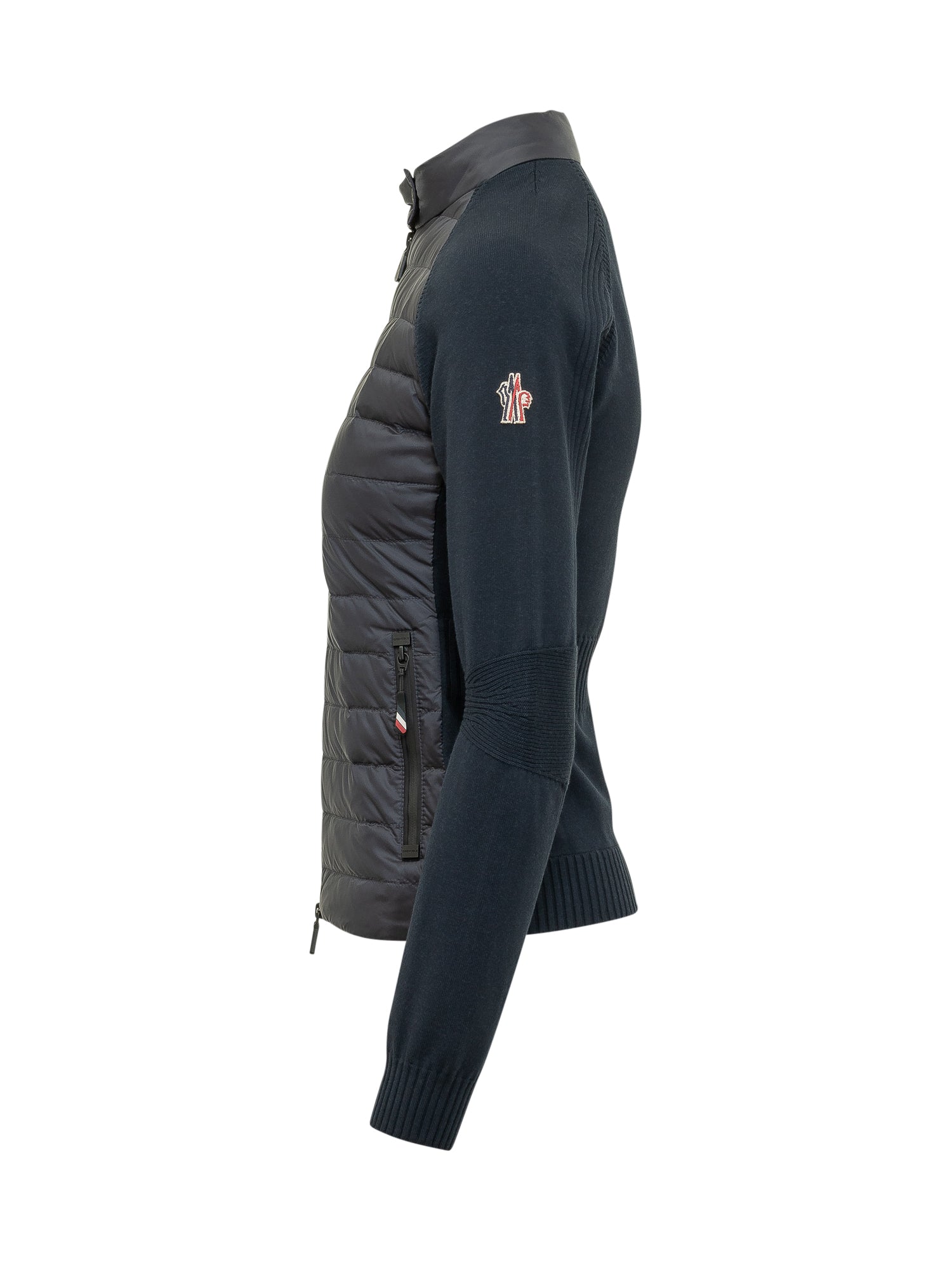 Cardigan with stand collar and front zip closure. Design featuring a quilted front panel, long knit sleeves and side zip pockets. Hybrid construction and regular fit for a sporty, contemporary look.