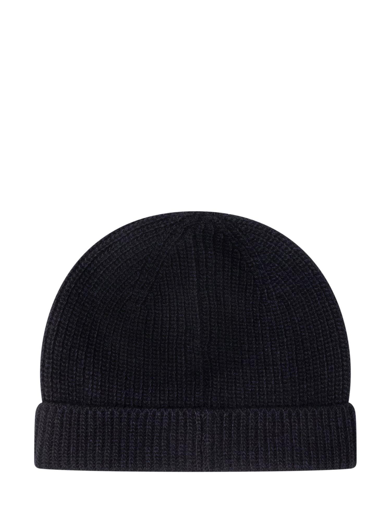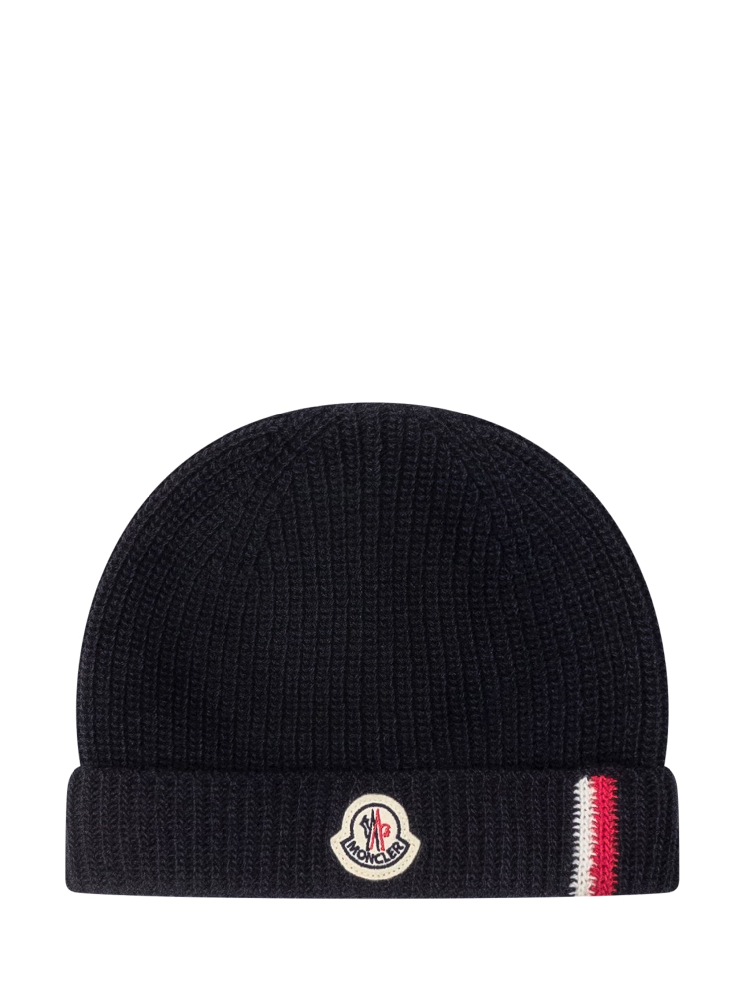 Ribbed wool beanie with turned-up cuff and front logo.