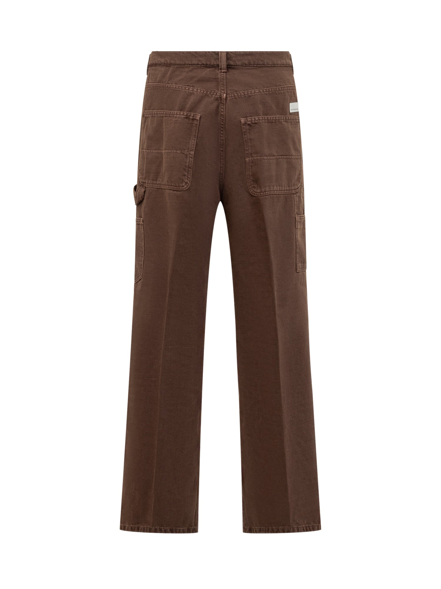 Nine in the Morning brown cotton trousers with straight-leg fit and knee details. Button and zip closure.