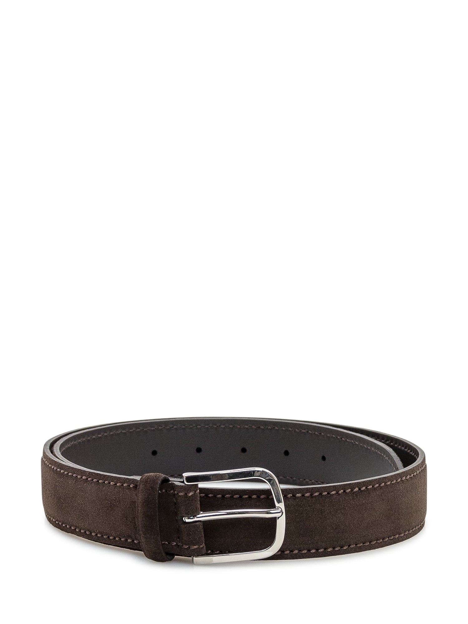 Orciani belt crafted in brown suede leather with silver-tone metal buckle.