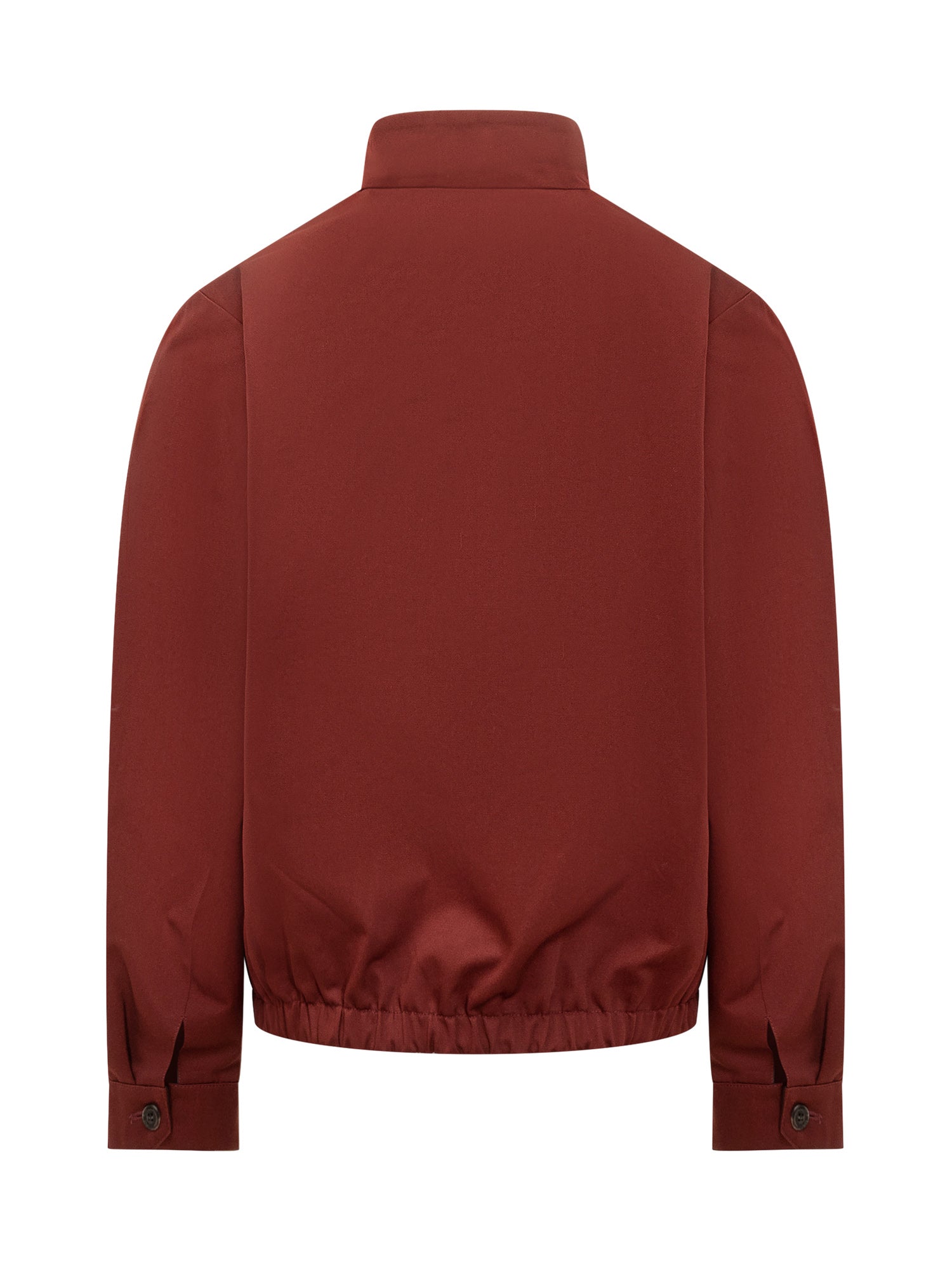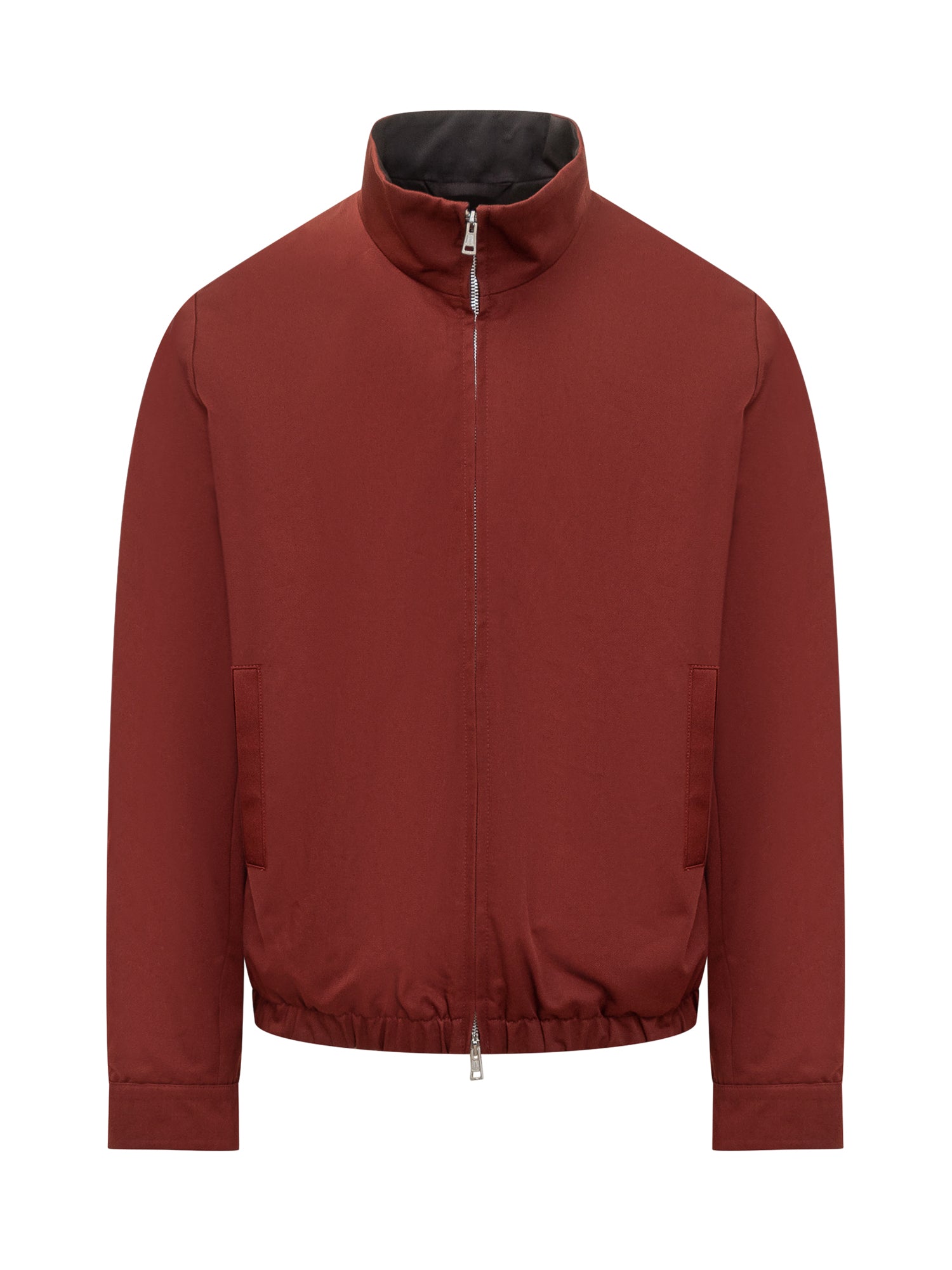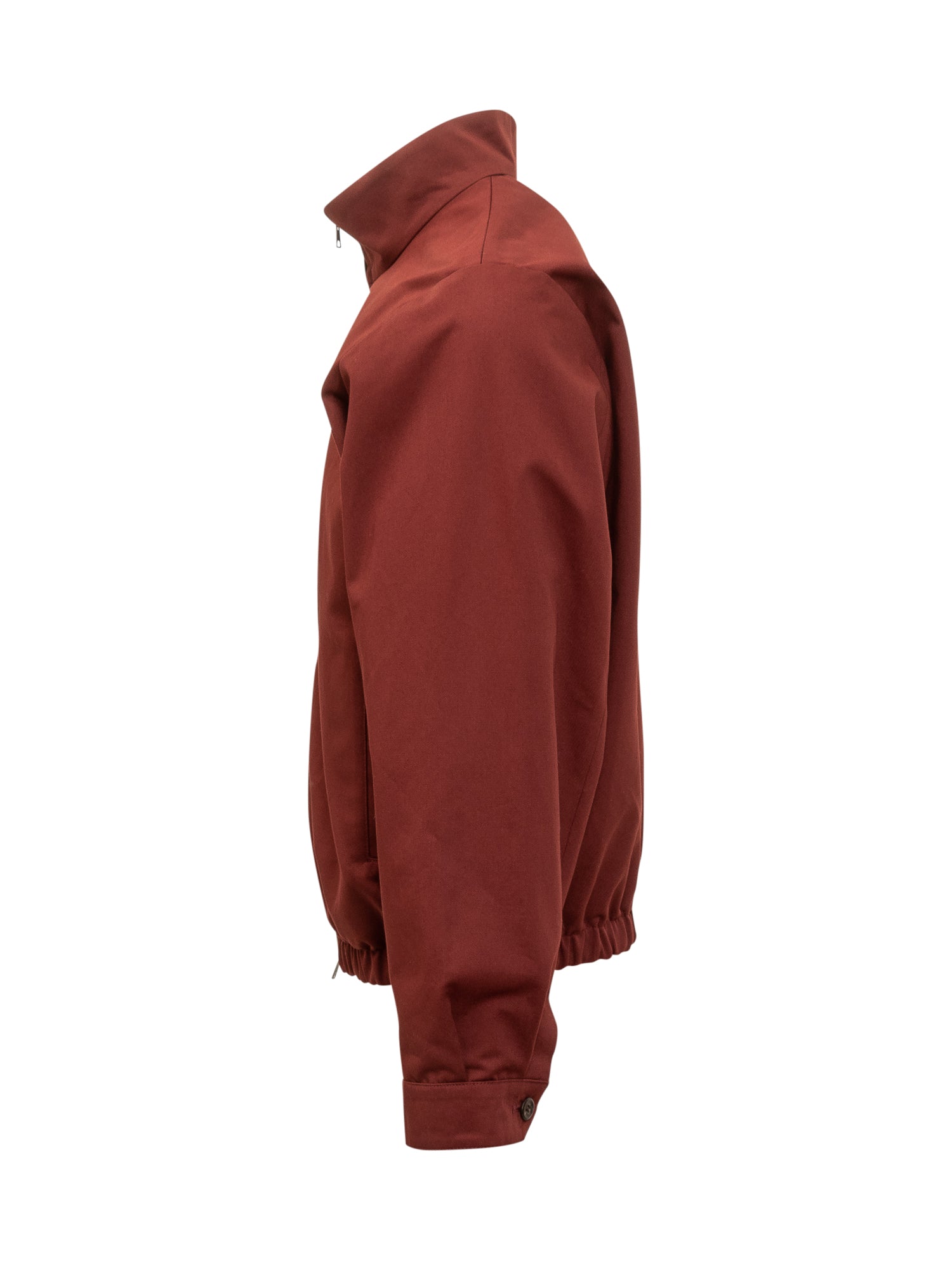 Our Legacy jacket in burgundy fabric featuring double-slider zip closure, high collar, side pockets and elastic hem.