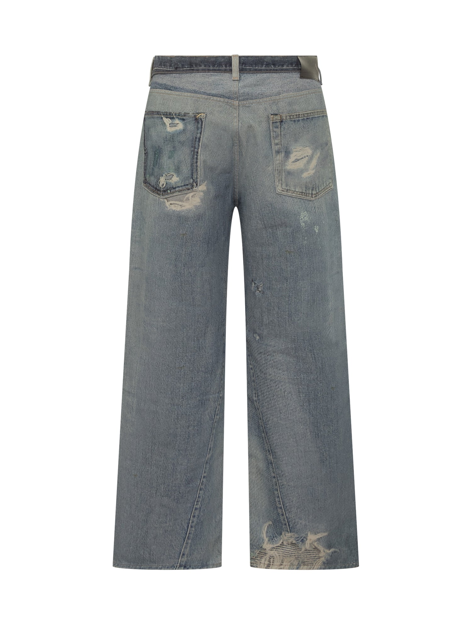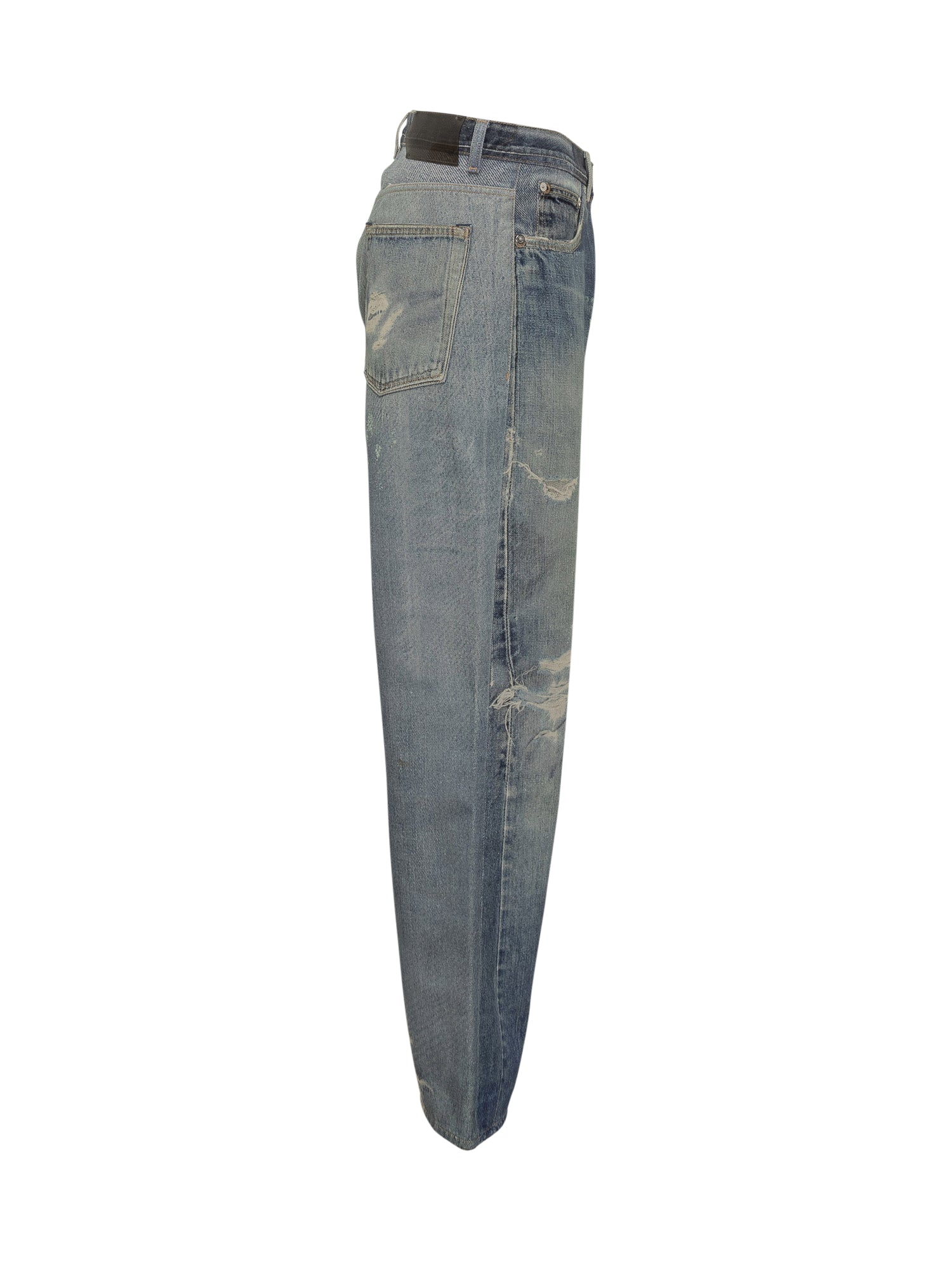 Our Legacy wide-leg jeans in blue denim with vintage wash and destroyed effect.